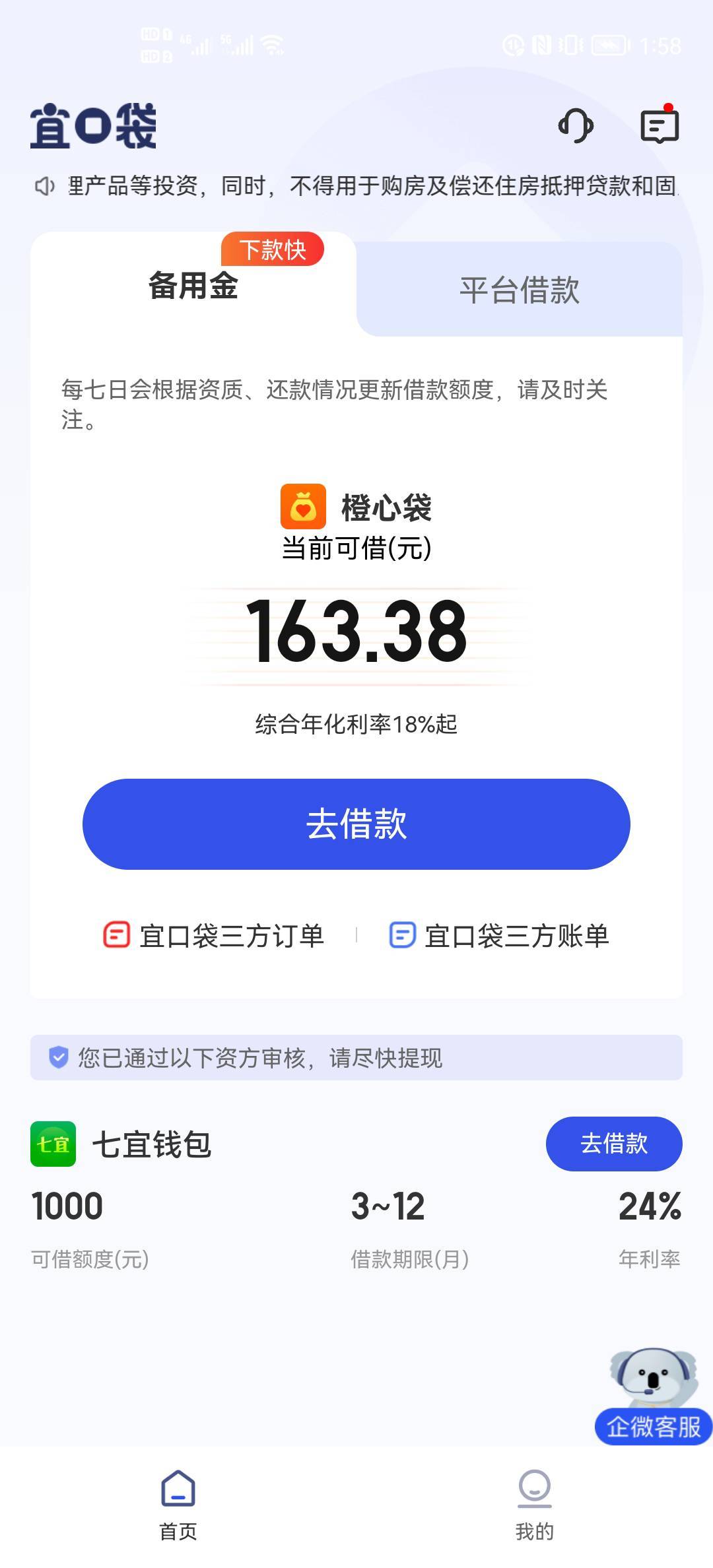 有老哥知道吗?匹配这个七宜钱包能不能下款吗?