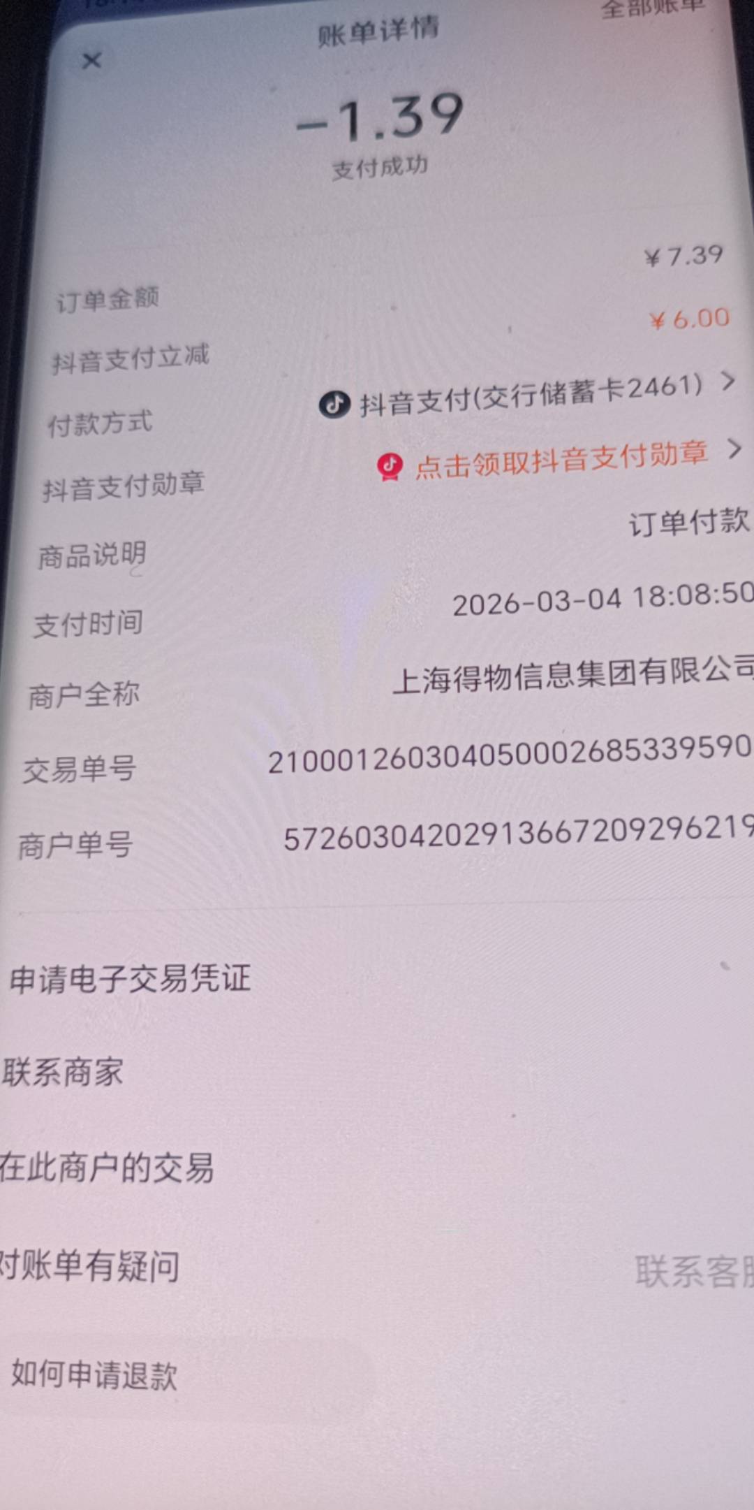 得物搜索摇一摇 话费10减3 跳抖音支付交行减6 我倒是第一次绑交行电子卡可以试试