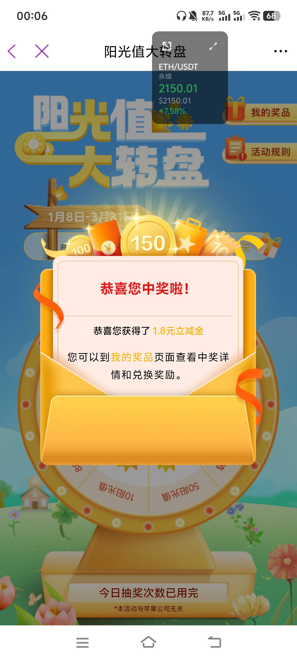 光大银行阳光值大转盘抽奖活动