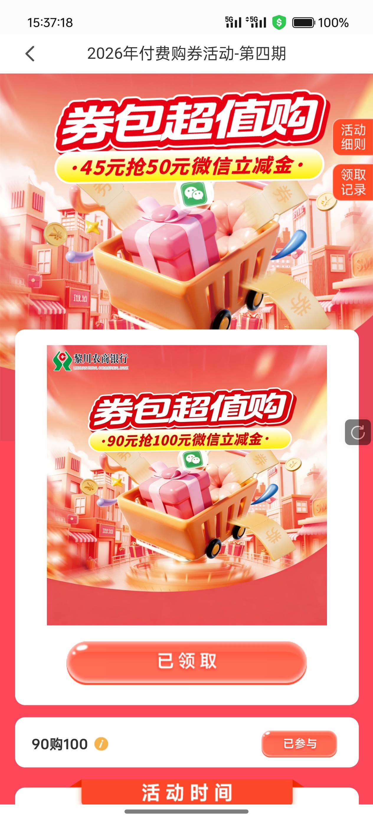 江西农商这个活动第四期,新的90买100。活动下面的两期我没买过,这次活动我买了3次
