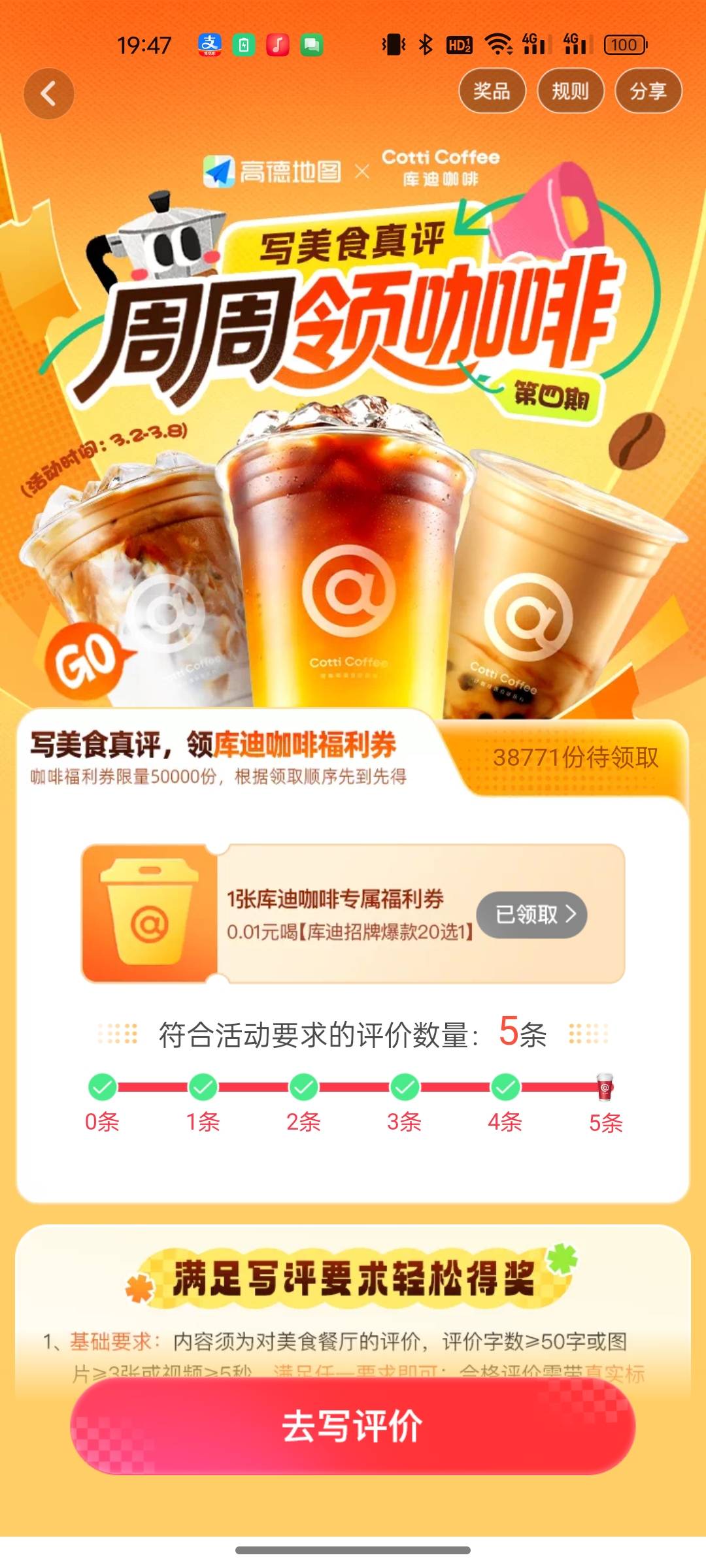 高德地图写美食真评周周领咖啡活动