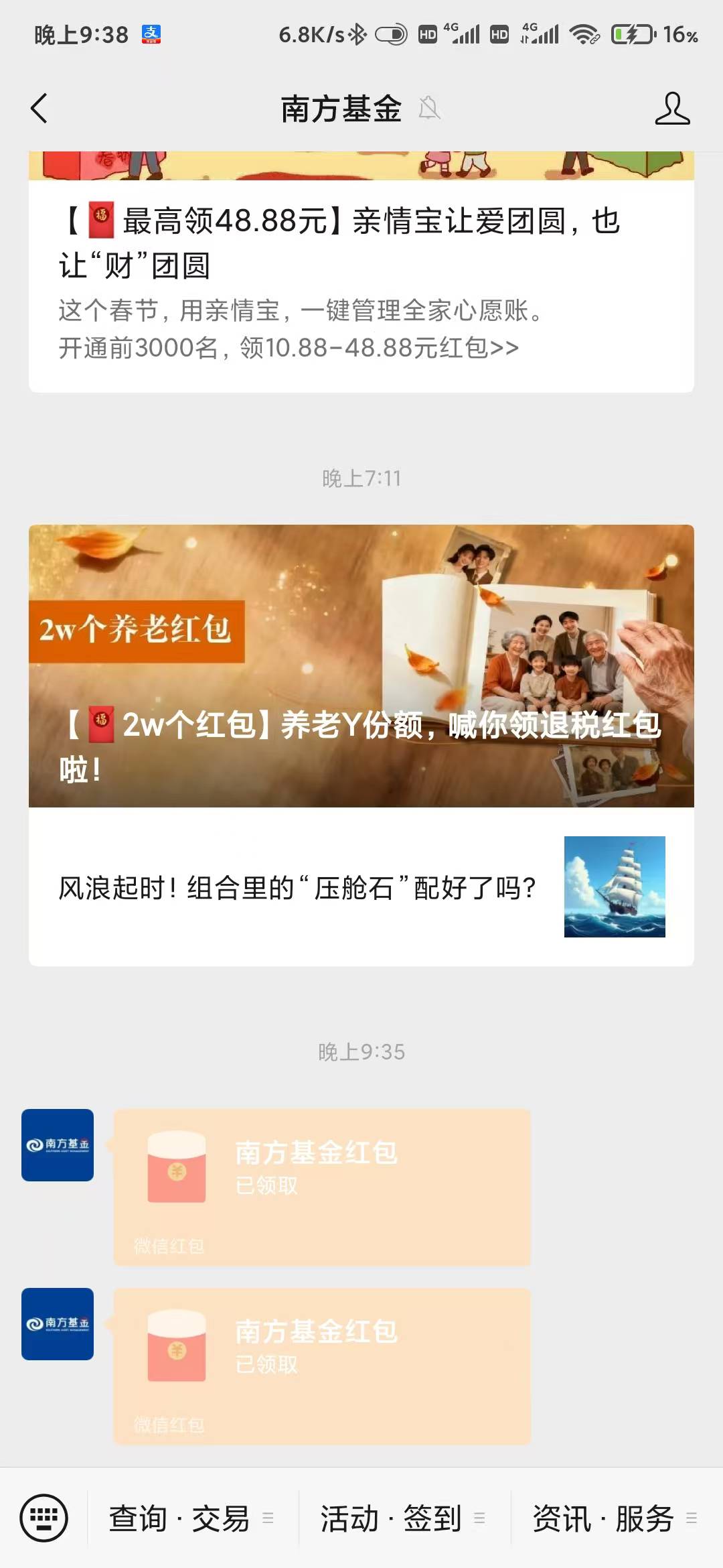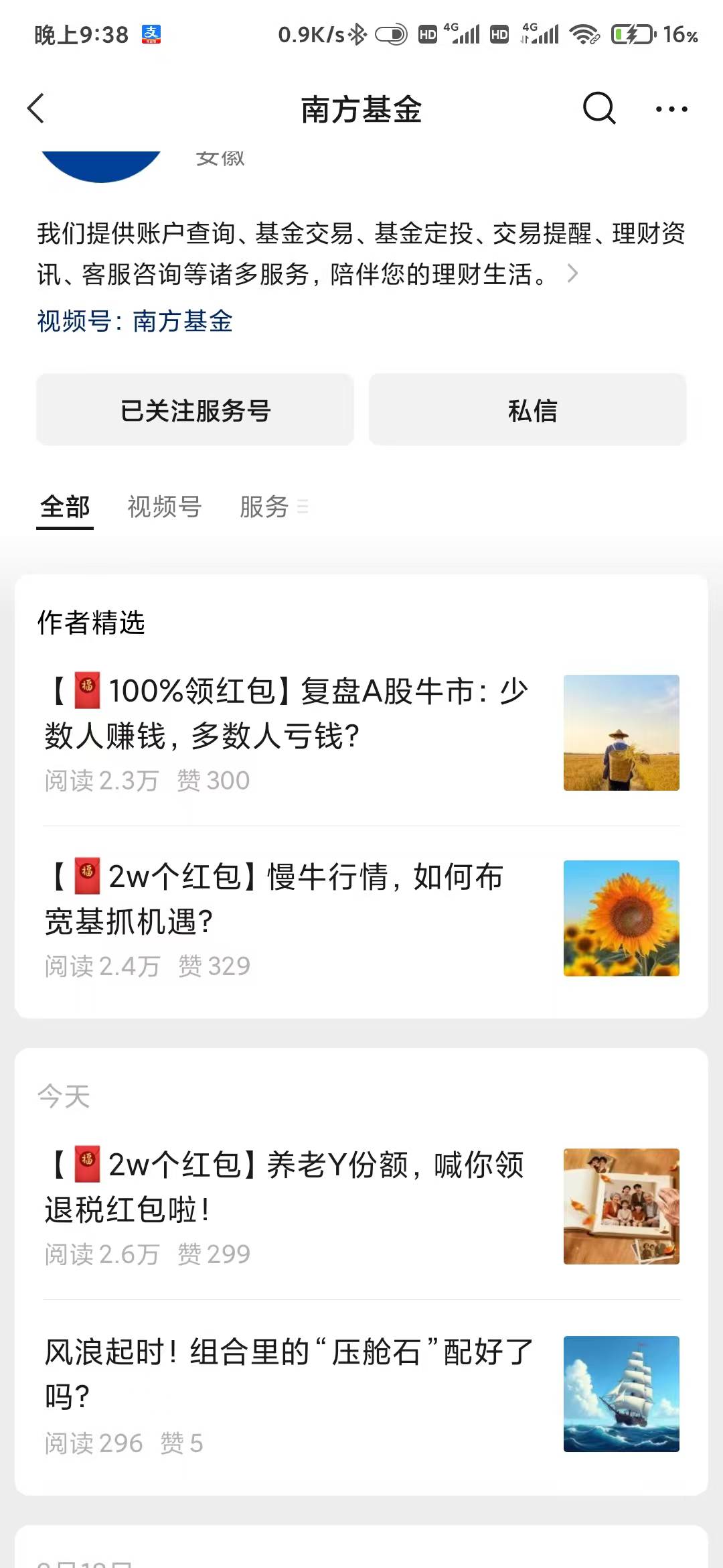 南方基金公众号第一条和第三条推文,0.88x2