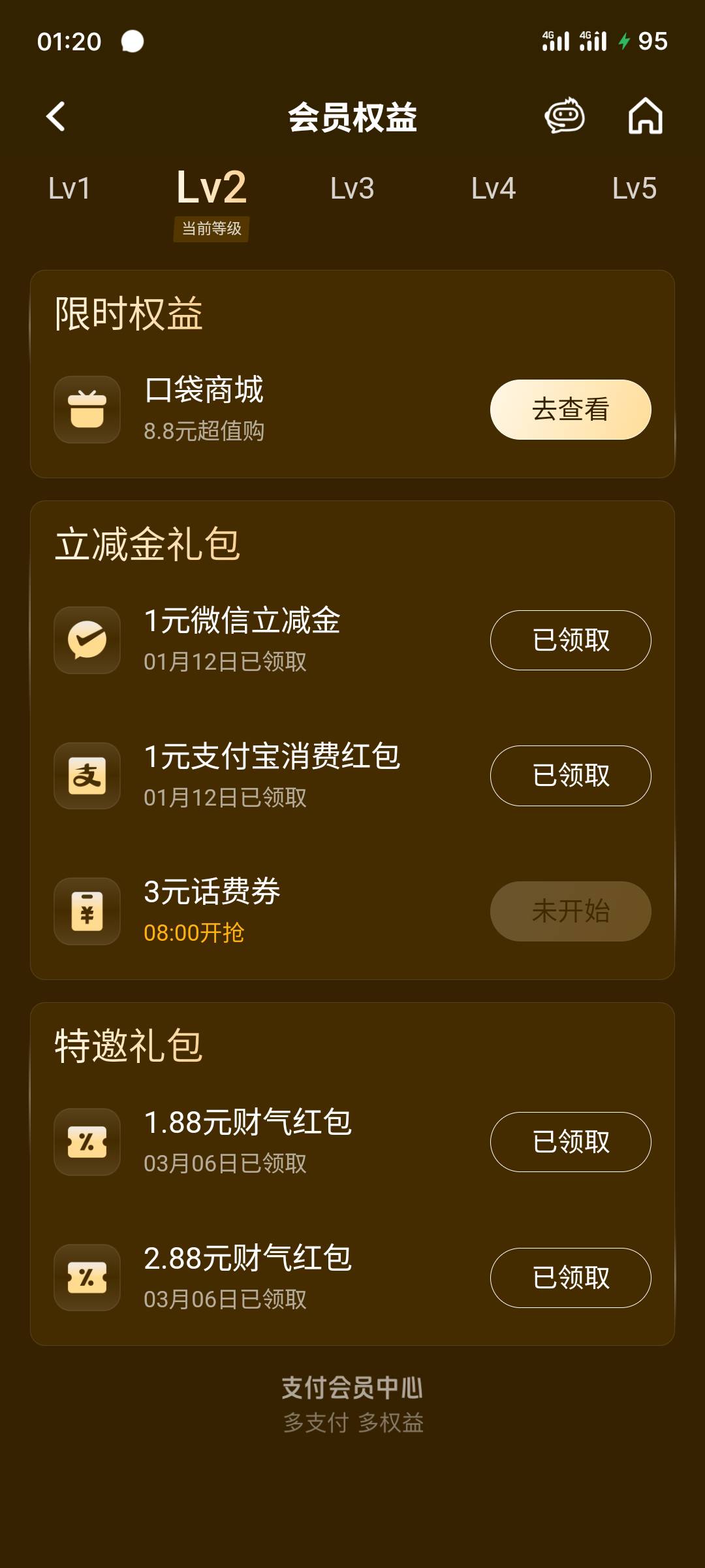 平安银行支付会员权益立减金礼包活动