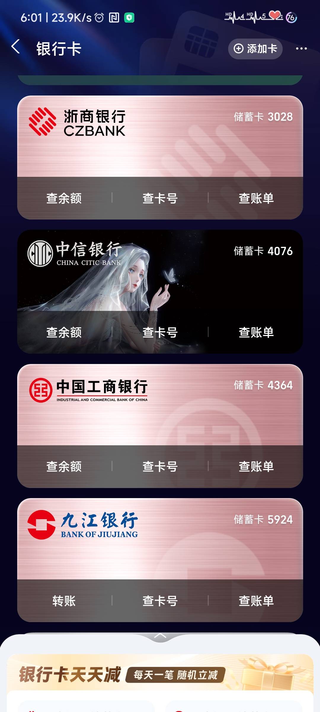中行青岛300-8,前几年开的卡一直没注销。中信这卡在支付宝居然显示卡面了