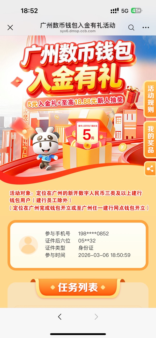 建行广州数币钱包入金有礼活动