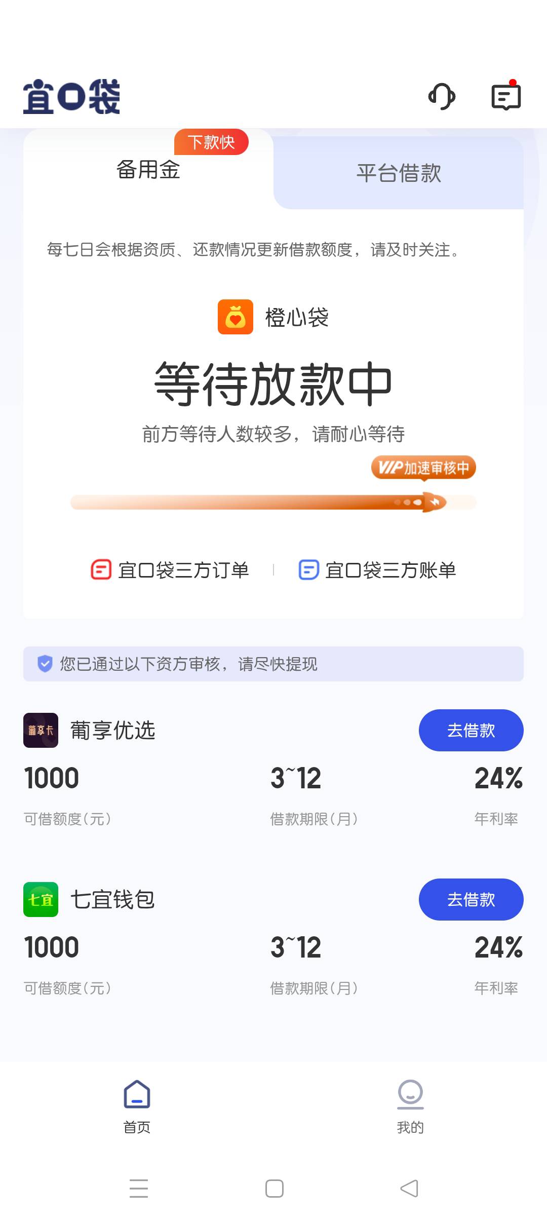 38那天ykd还款日,cxd额度一直秒拒推不过,晚上照常点了一下居然过了审核买了先付后用不知道什么时候能到账,下面还出现了葡萄七宜两个哼哈二将。