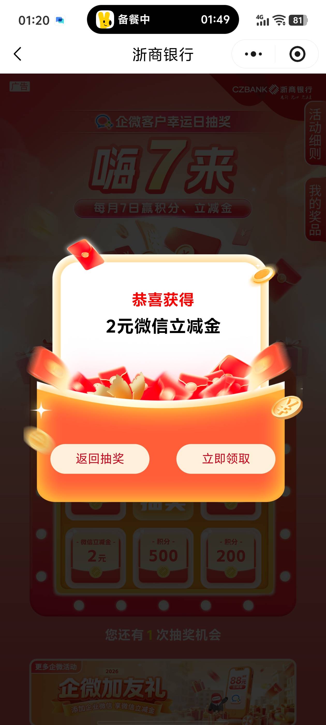 浙商银行企微每月7日幸运日大抽奖活动
