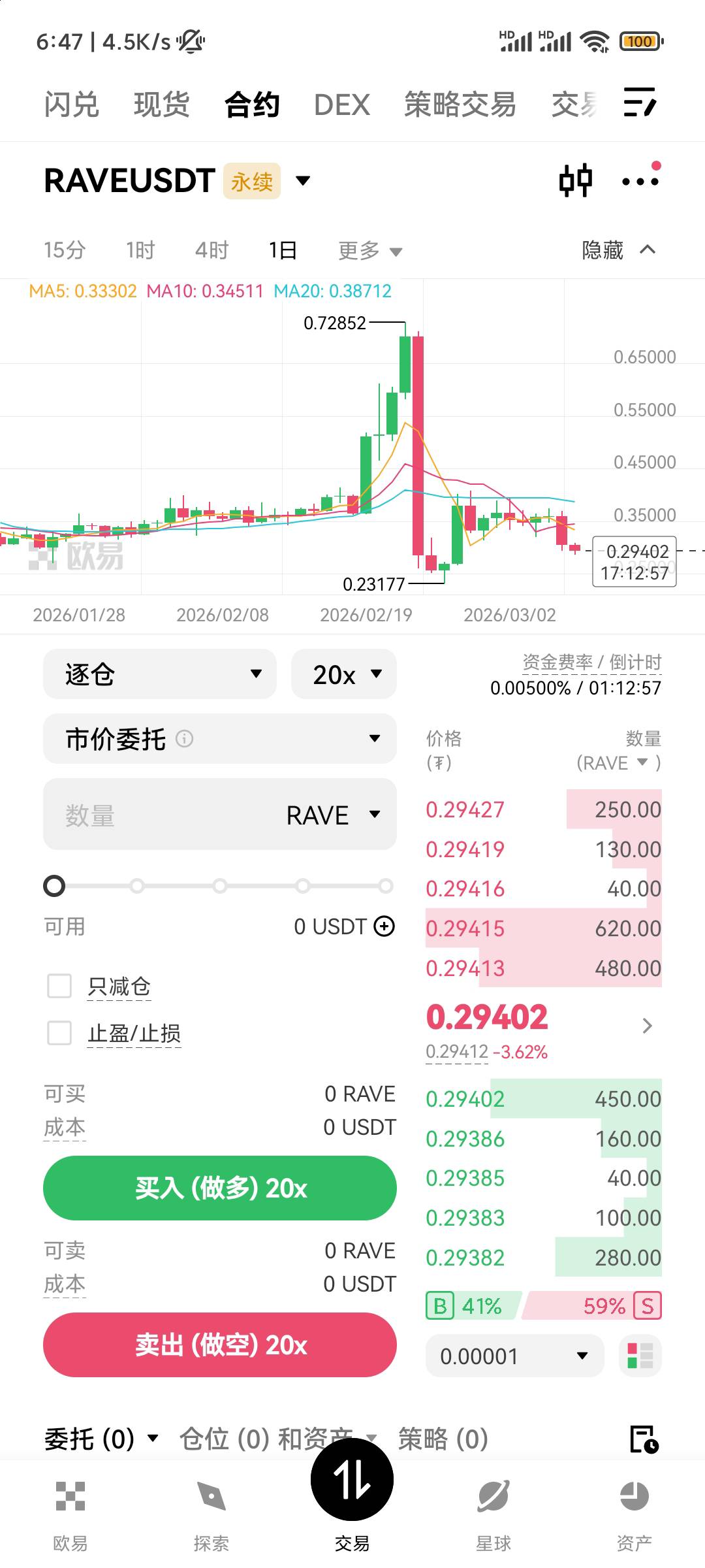Skr这两天真稳,还好昨天下午那么一瞬间吃上了,昨天做空rave的老哥吃上了吧,一直在