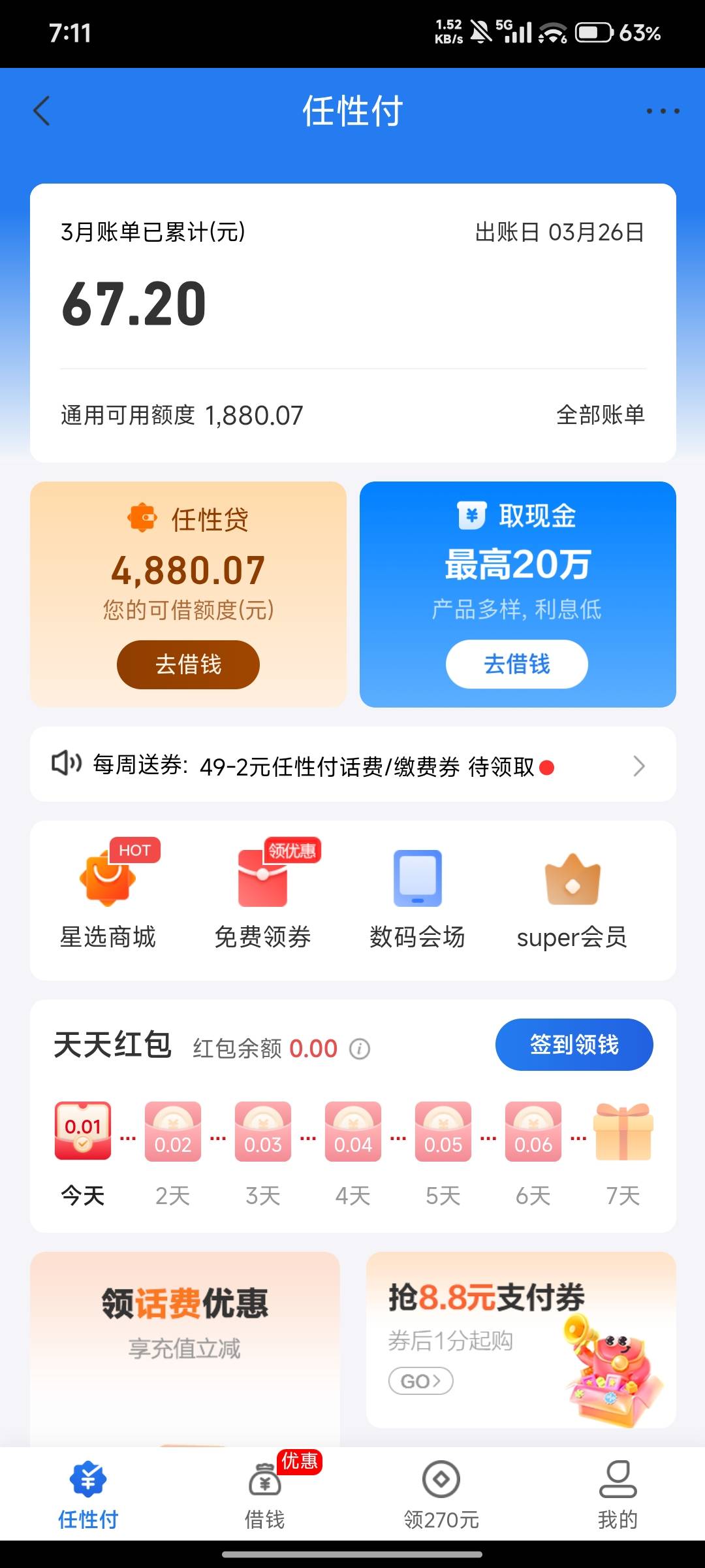 宇宙温柔 发表于 2026-03-07 08:08 只能买吃的喝的,话费只能50的充