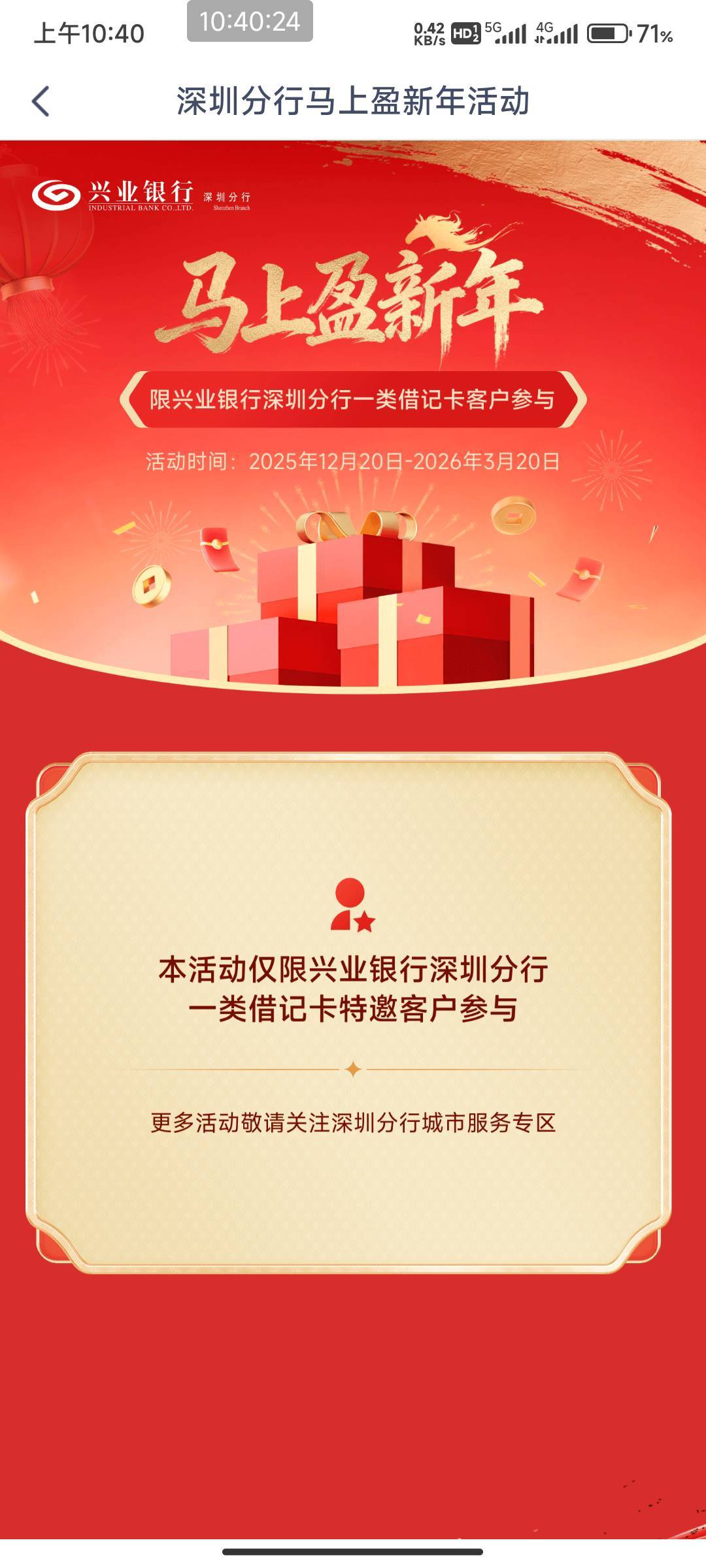 明天看得见吗 发表于 2026-03-07 10:49 这个要归属行是深圳的,不然有卡也参加不了