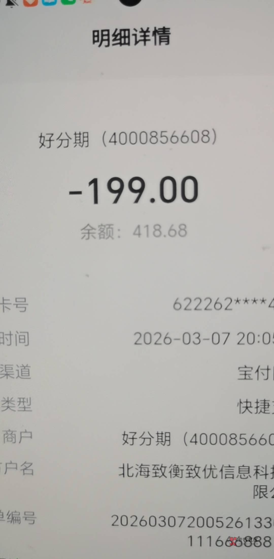 好分期忘记注销了,刚被扣了199,找客服秒退,