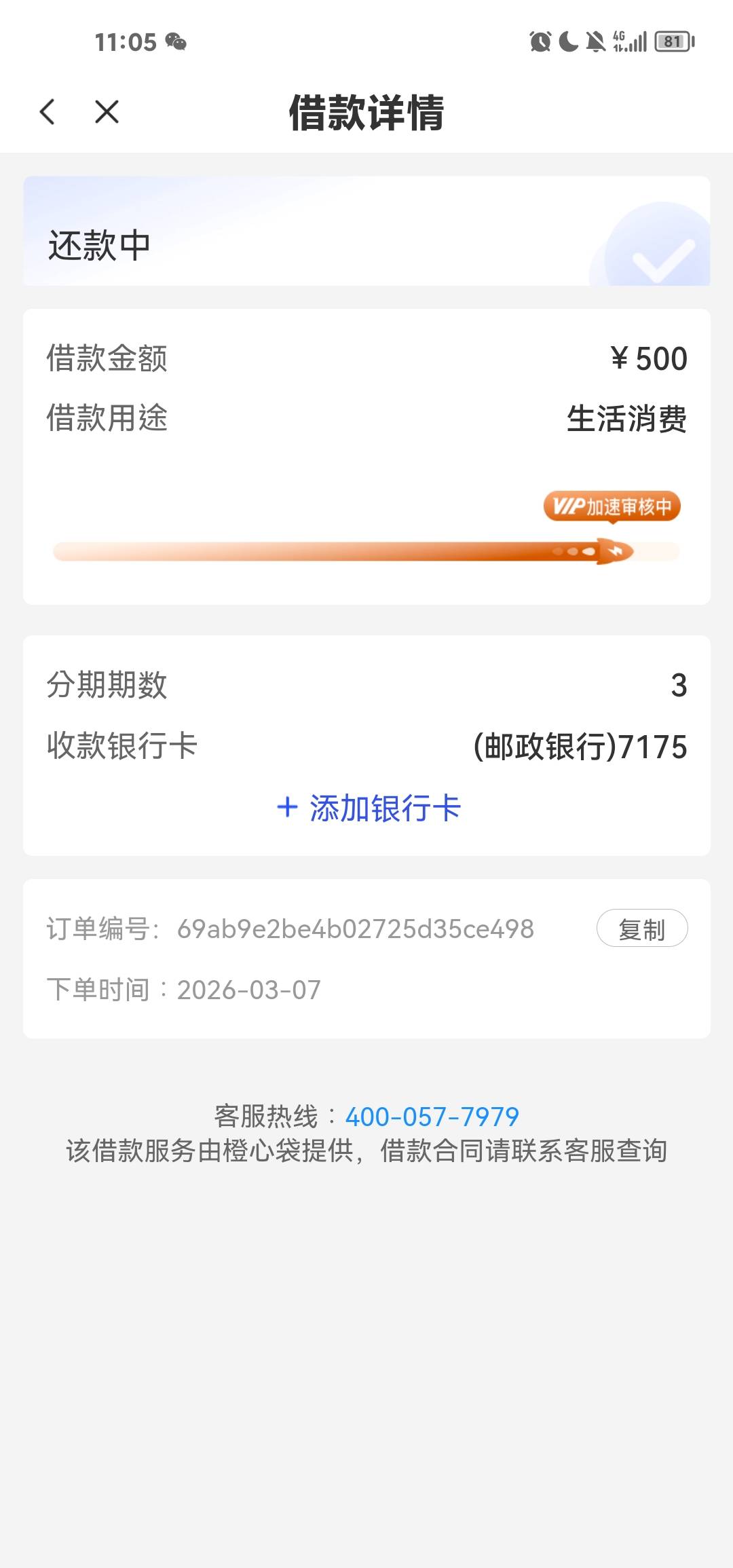AdeL 发表于 2026-03-08 11:27 你申请的多少金额?? 橙心我有额度去点的话,临近还款日就还款日才下款,其他一般都是三天内到