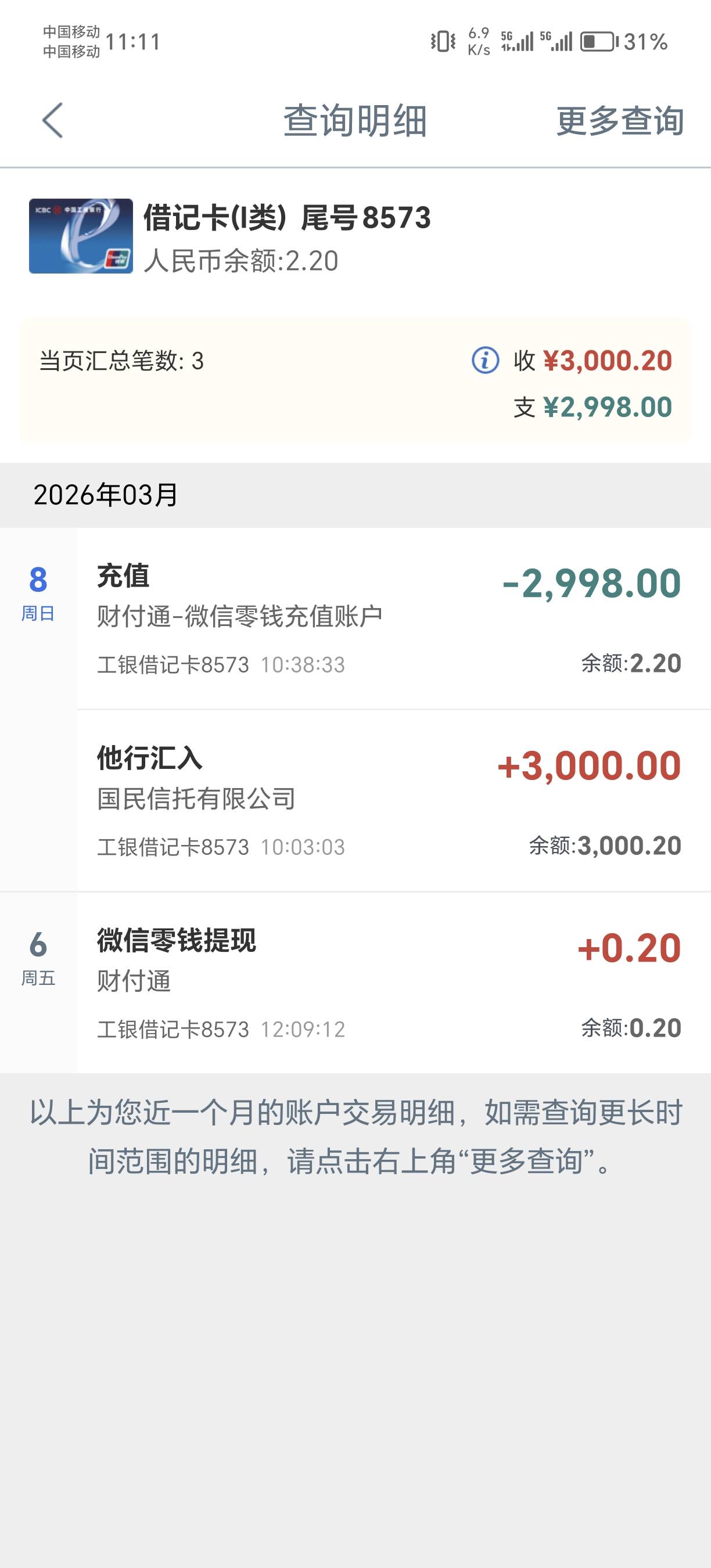 ycjsisjdb 发表于 2026-03-08 12:24 对啊,工商银行信用卡我也是逾期了的,以前只要卡里有钱都是秒扣,今年不知道是不是改规则了,不秒扣了,我长期故意留几毛钱在卡里,观察他什么时候扣,我才敢绑这张卡的,
