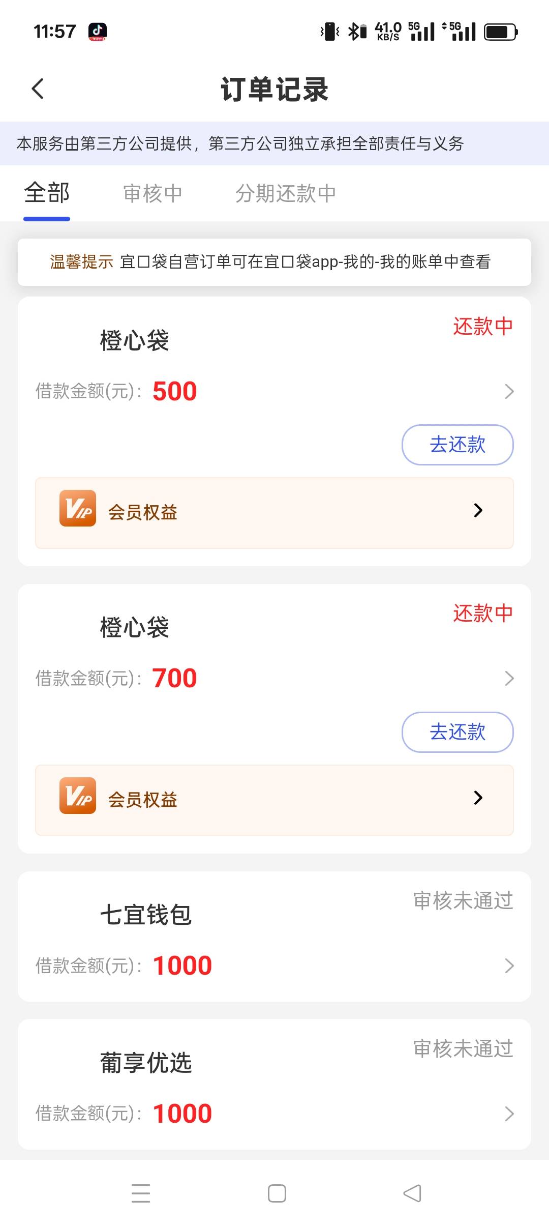 橙心贷第四笔500到手,前天怡口袋本体下1700,昨天点没下,今天申请本体也不给下,后