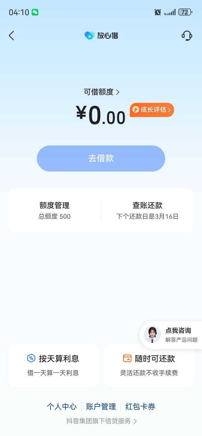 唉 放心借才给500