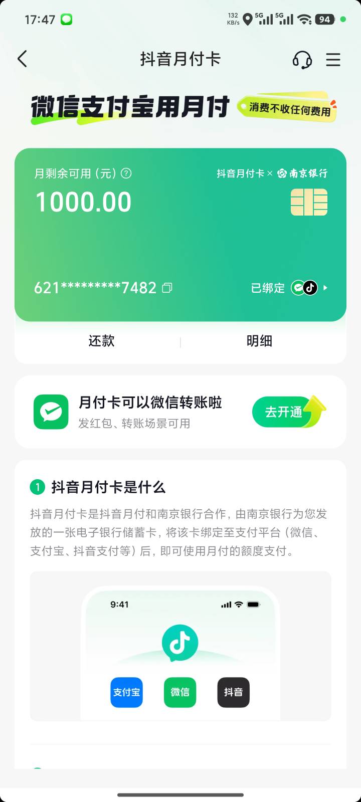 徽意沙发 发表于 2026-03-08 20:04 抖音月付卡怎么搞的?我有月付1000,没看到卡啊