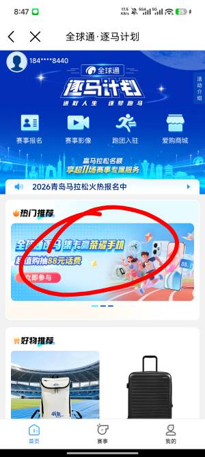 移动搜马拉松,横幅进去,大概率话费