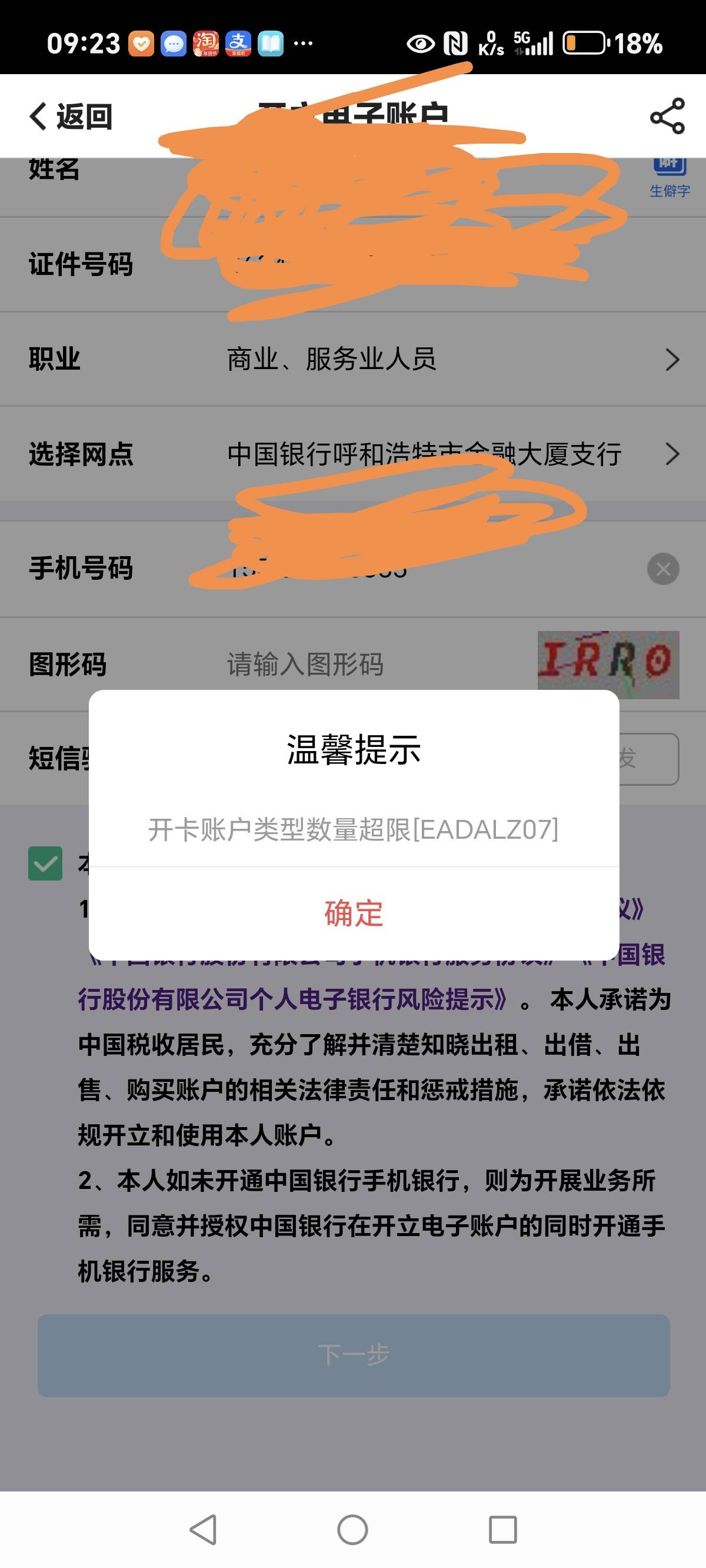 中国银行,一张养老账户、四张二类账户、五张三类账户、开不了二类账户,上限了吗