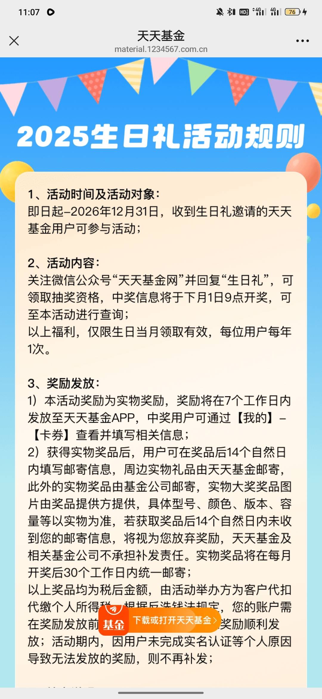 天天基金生日当月专属福利活动