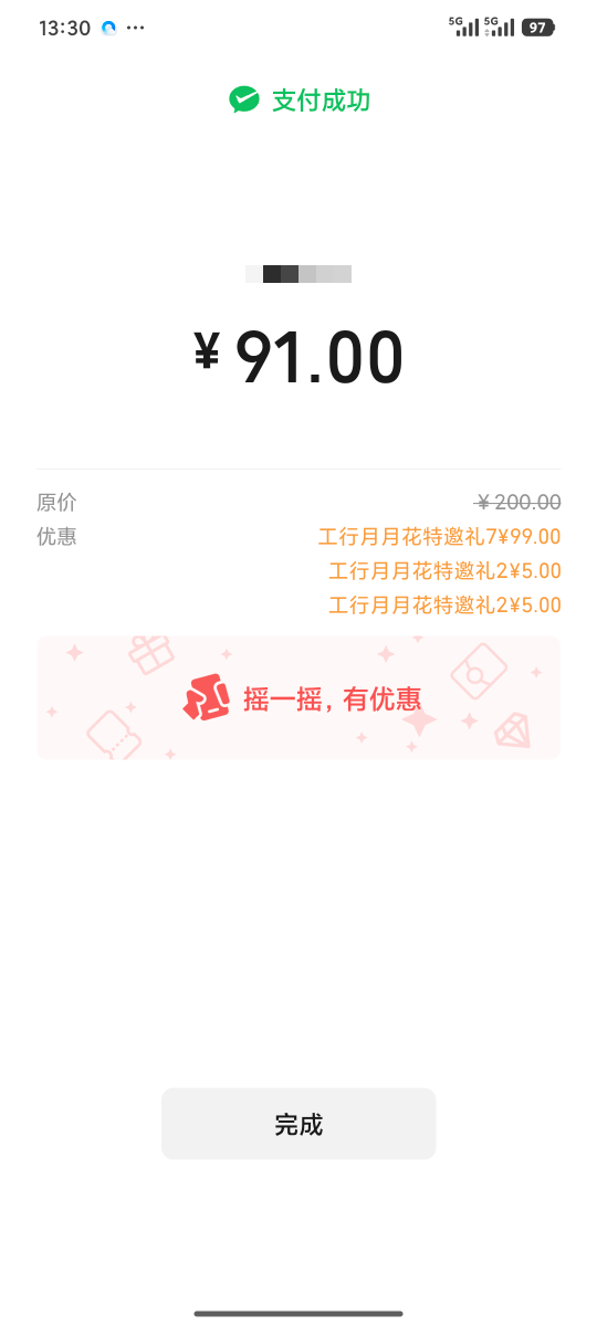 工行深圳支付月月花达标抽奖活动