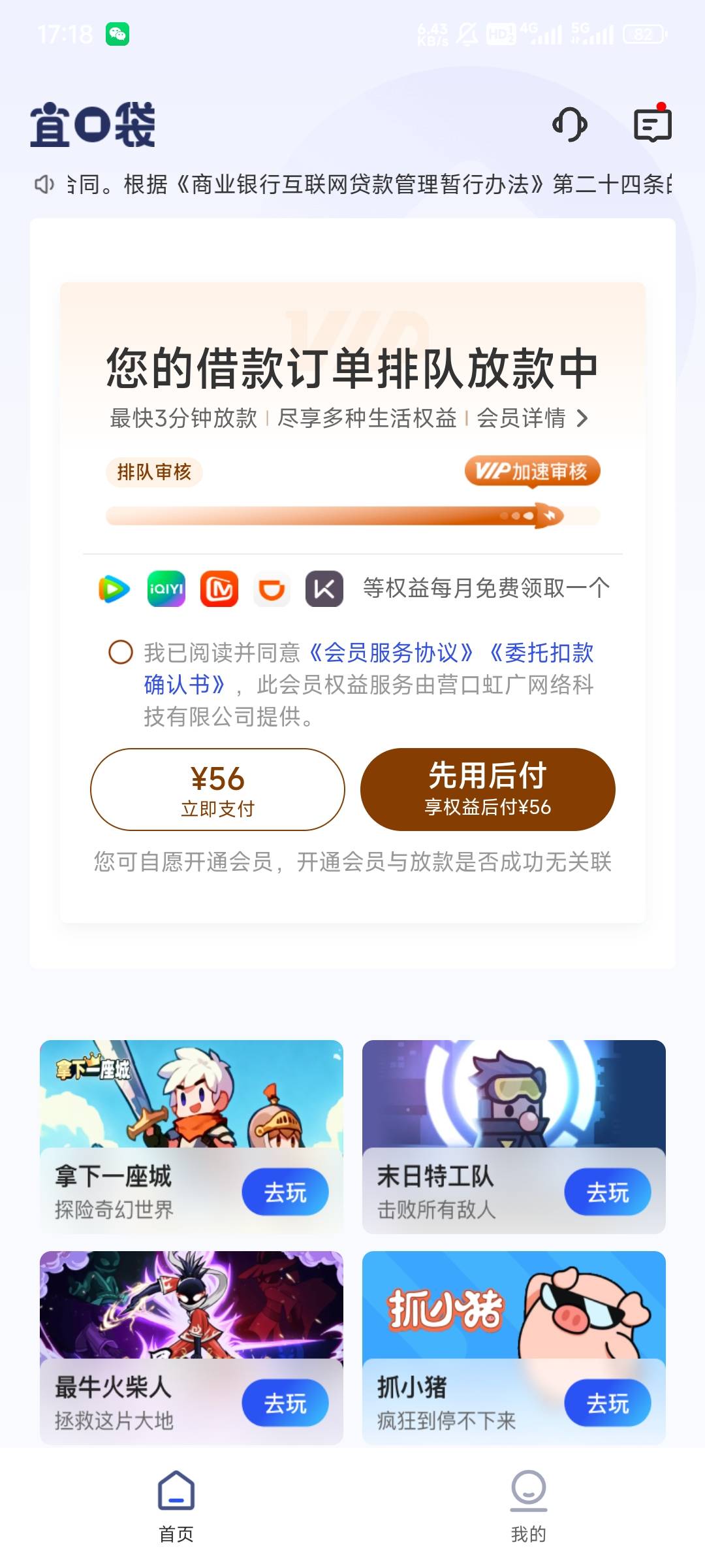 宜口袋第二笔,开会员提升额度申请了一笔秒拒,然后来短信生成新订单,提交了现在行方审核中,要不要付会员费???