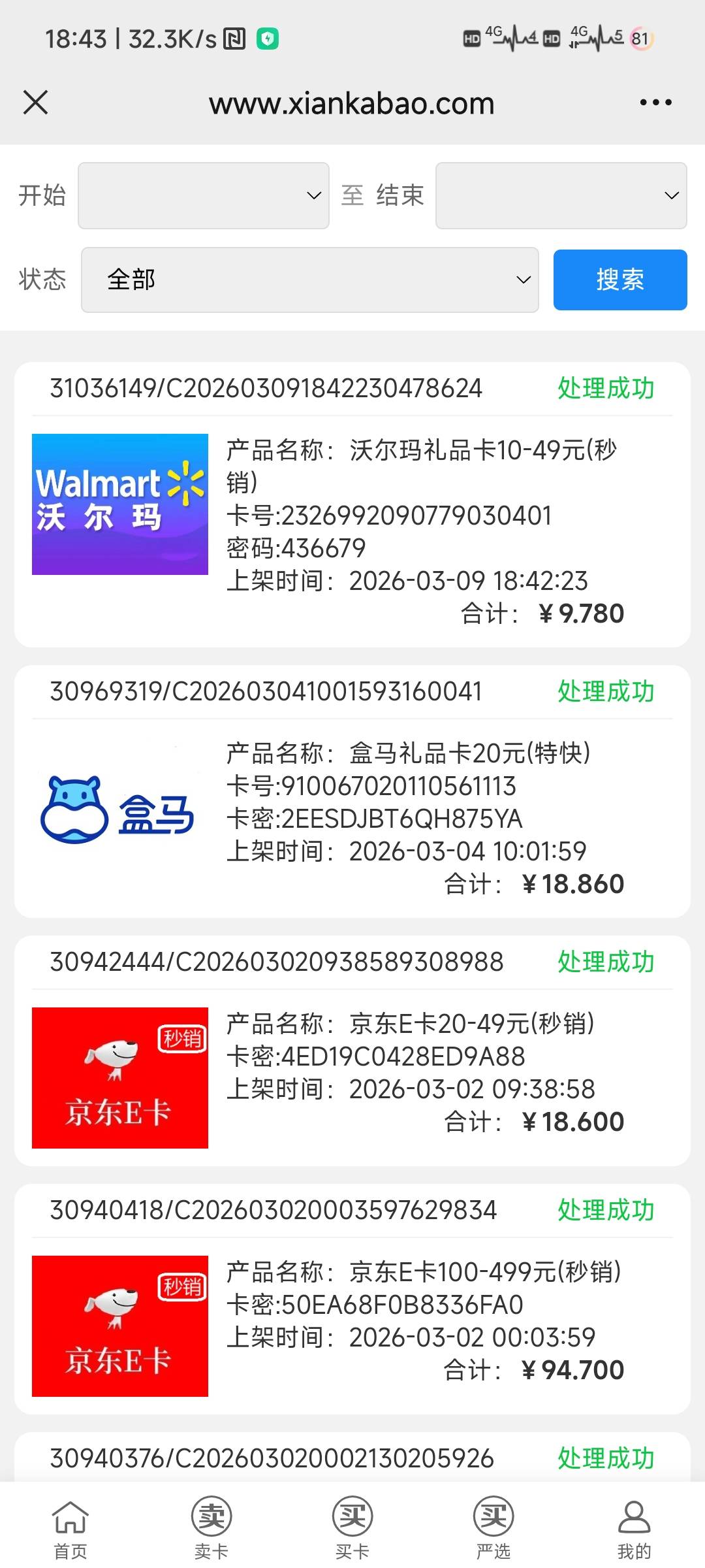 前面老哥发的广州电信1元购,沃尔玛润比e卡高