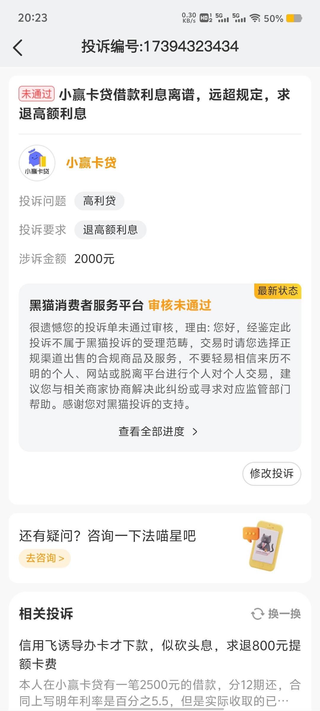 老哥们,黑猫投诉小赢卡贷总是不通过,怎么回事啊