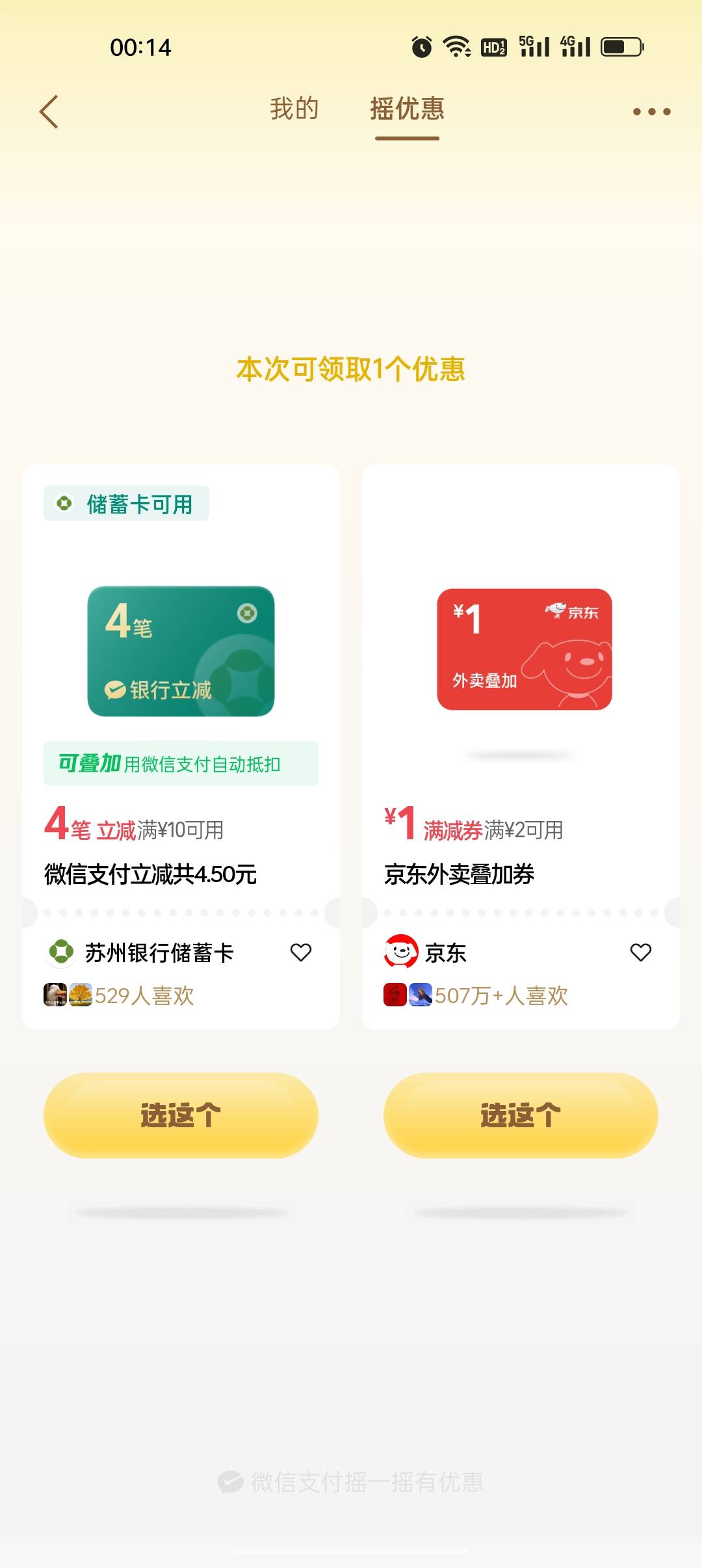 微信摇一摇苏州银行微信支付多笔立减活动