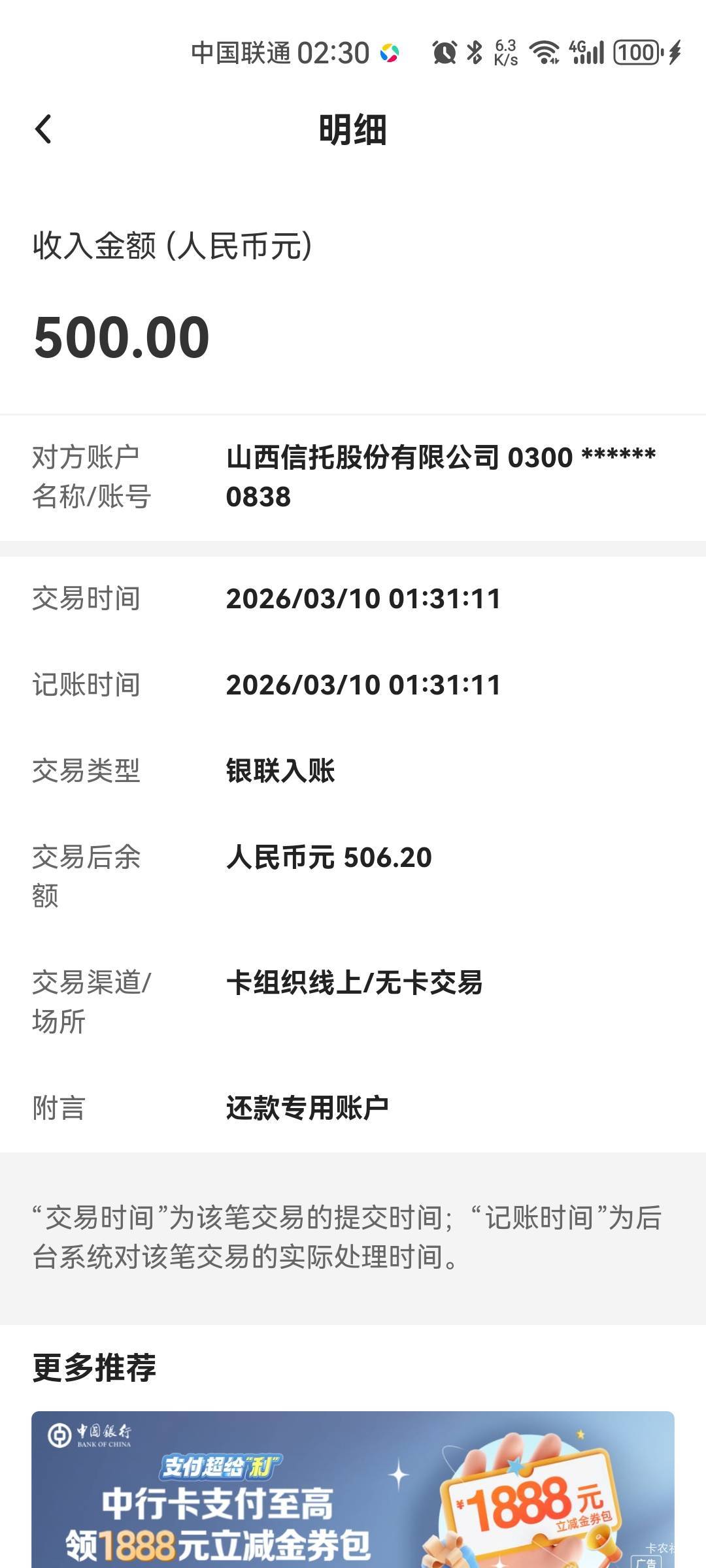 卡农盼盼 发表于 2026-03-10 02:27 老哥,发一下银行到账截图吧