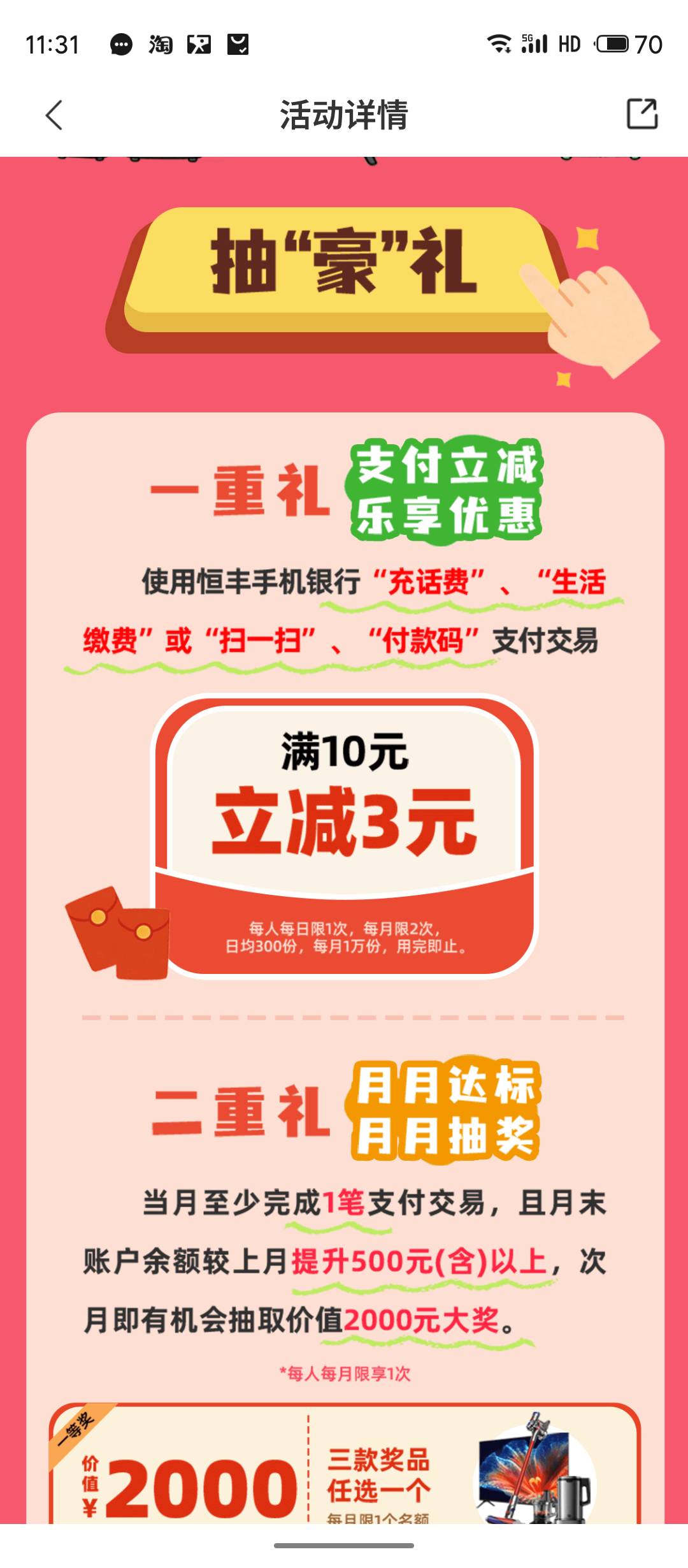 有恒丰YHK的  花费    充50-3  每月2次