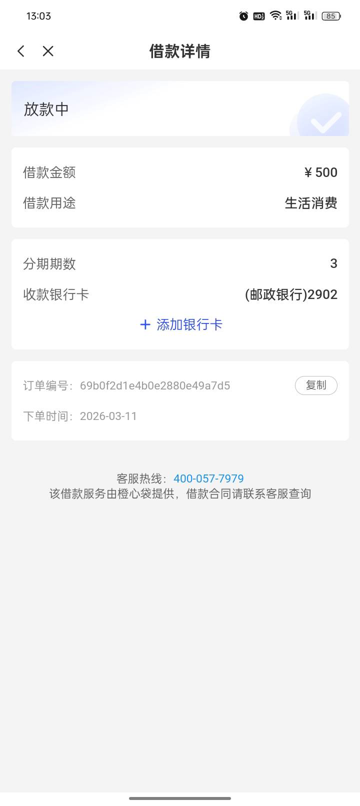 第三笔 刚刚收到短信申请