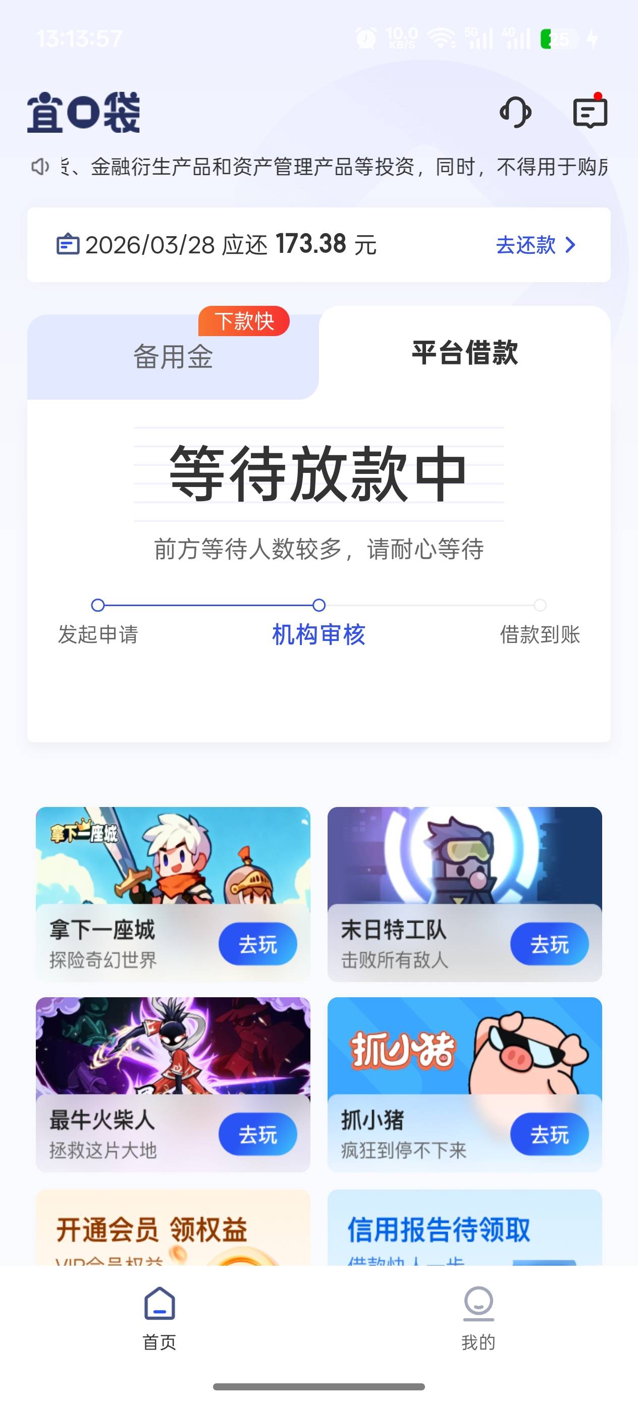 宜口袋本体又下了一笔,本来申请秒拒了但是后面让我调成500用了会员先用后付几分钟就