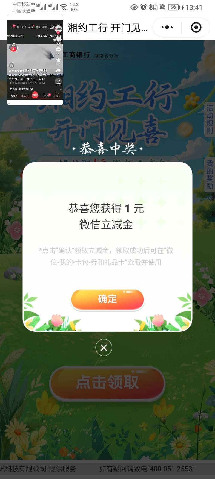 工行服务小程序湖南湘约工行开门见喜活动