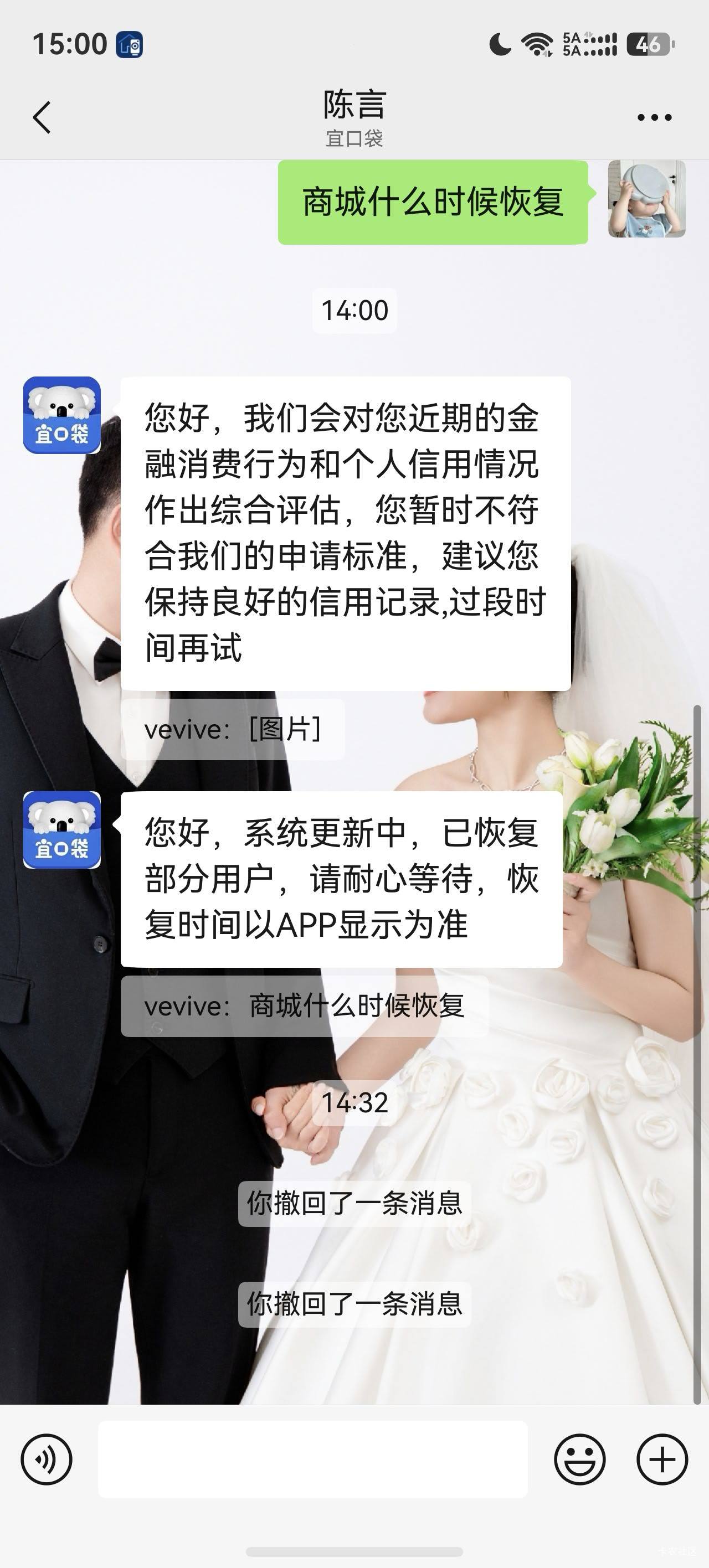 宜口袋没有额度好几天,找客服反馈了一下,一开始一元开通会员给了4000临时额度,秒拒
