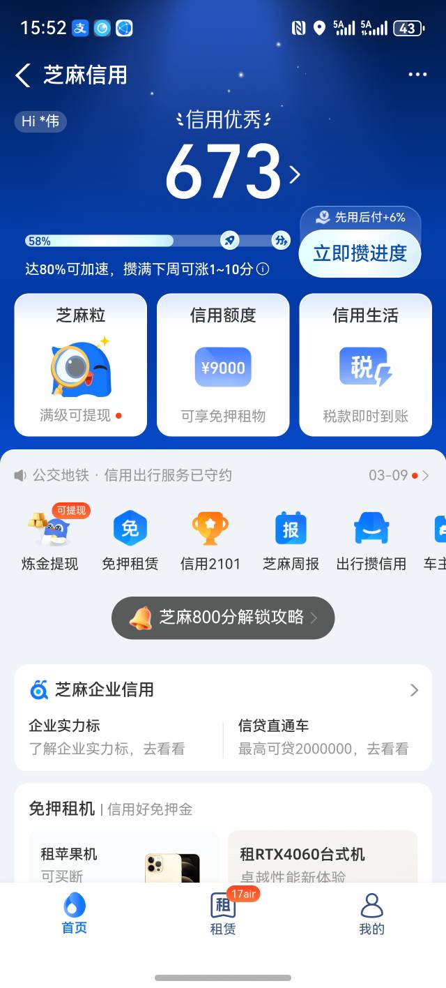 强大的老哥们,能不能给一张芝麻分五百多的截图给我租个机跪求