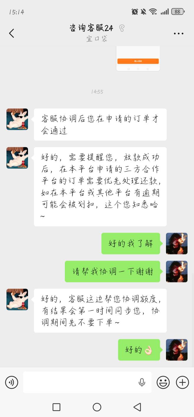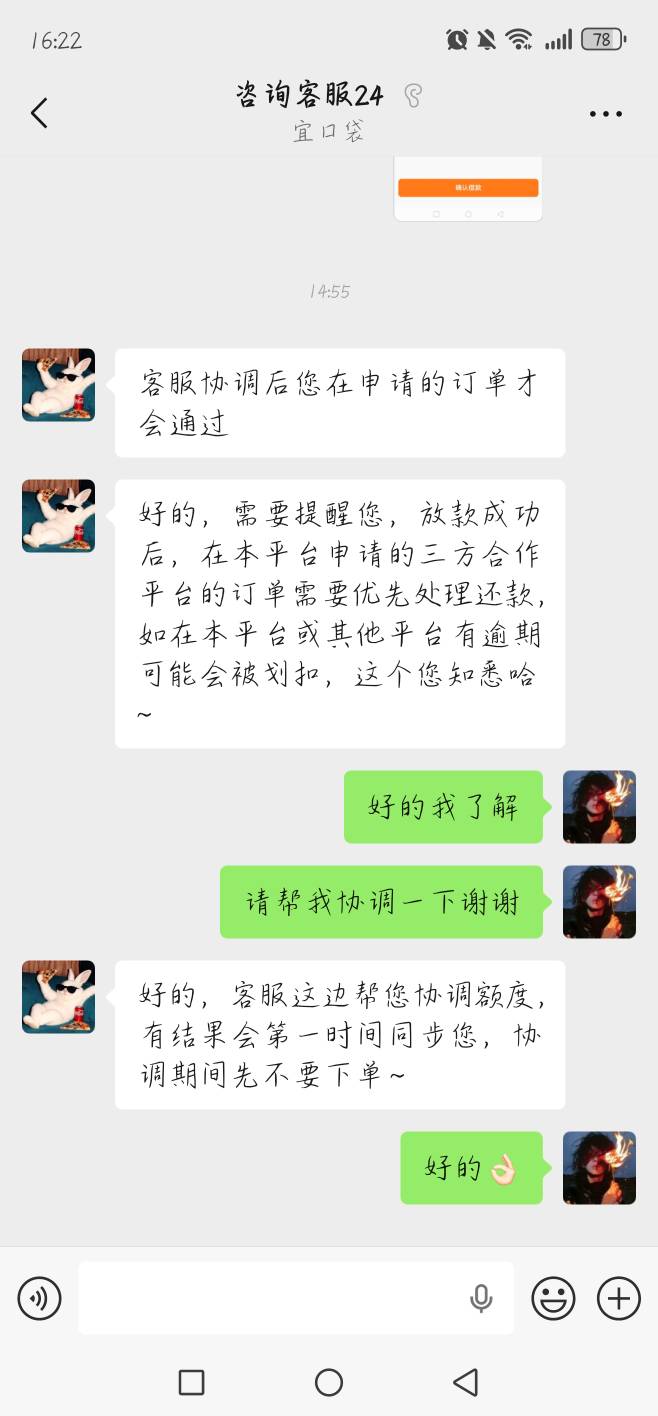 佑你安 发表于 2026-03-11 15:38 五千五是今天橙心袋的额度。我申请被拒了。客服协调应该也是五千五。因为我宜口袋本体逾期五千四了。不可能给我五百吧。