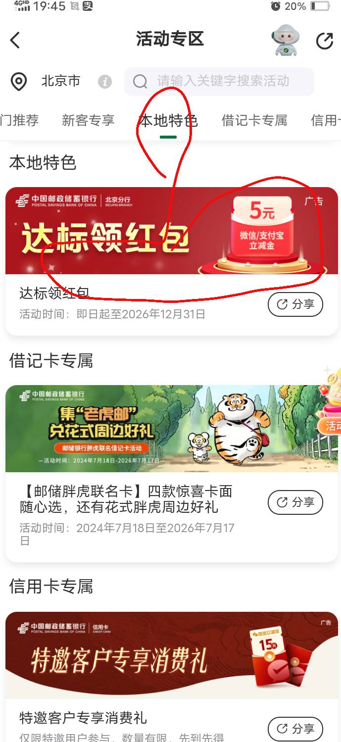 邮储北京好礼大放送达标领红包活动