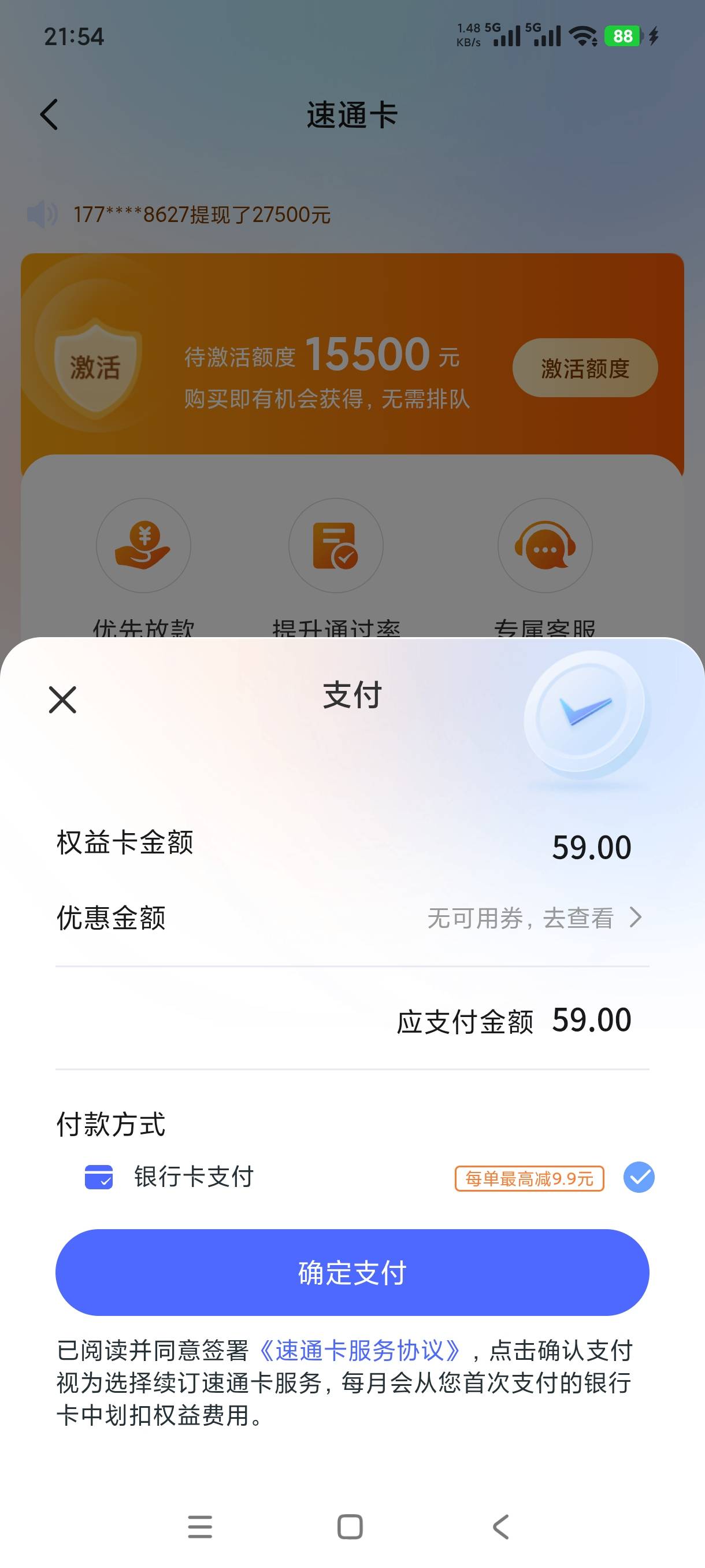 老哥们,宜享花开通权益卡有希望下款吗?