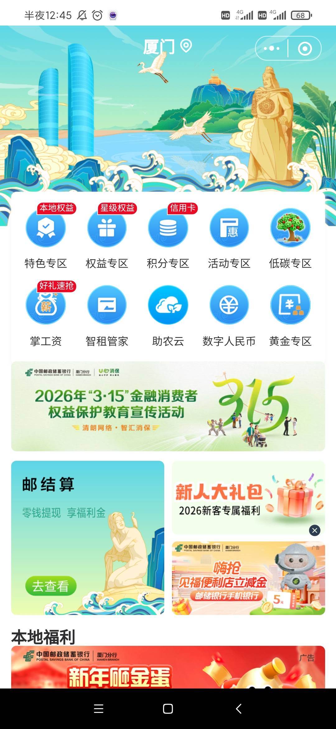 邮储厦门本地服务消保知识答题礼活动