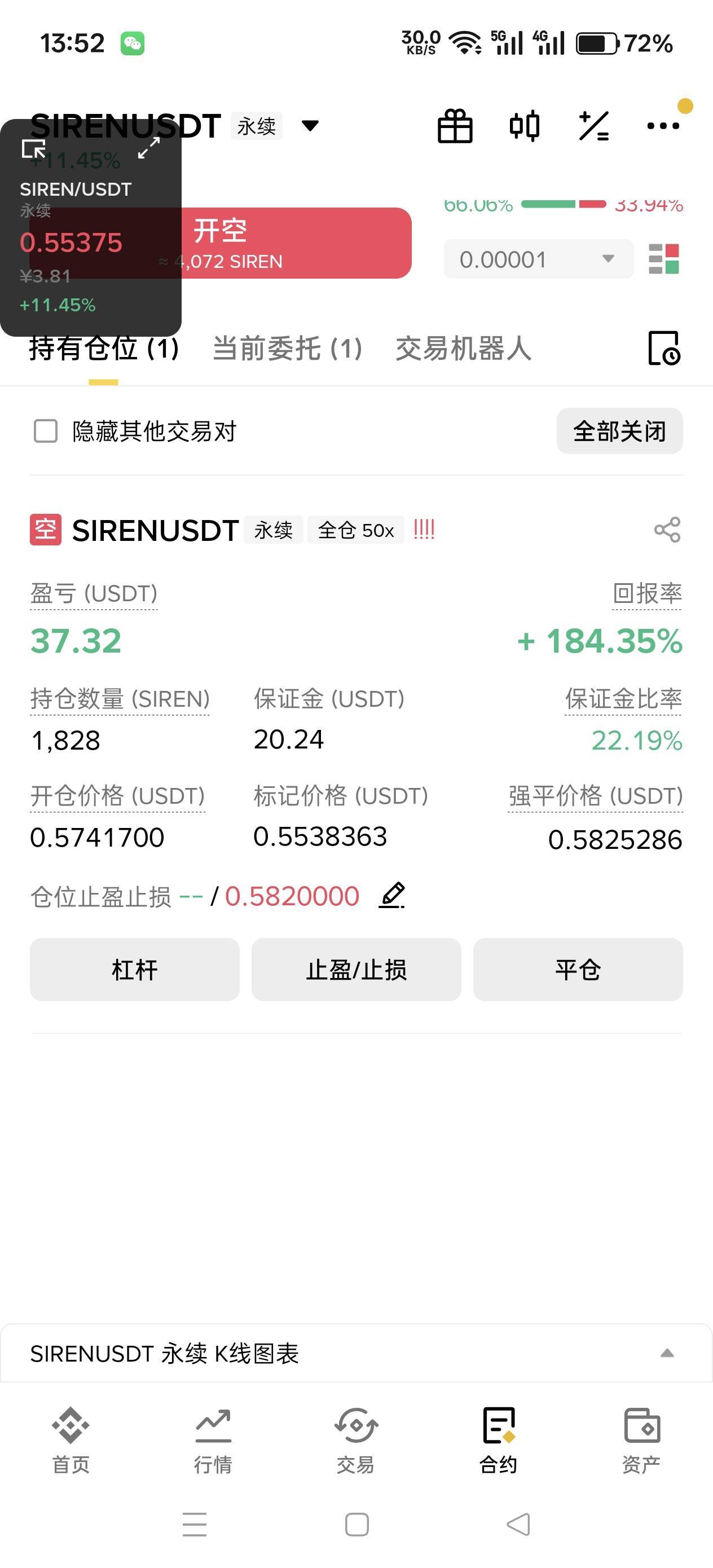 爆了又马上做空,都是利润在玩,打开始玩合约亏了将近1万美金,也就是还没成正,但是现在投资基本都是赚了就卖,花了