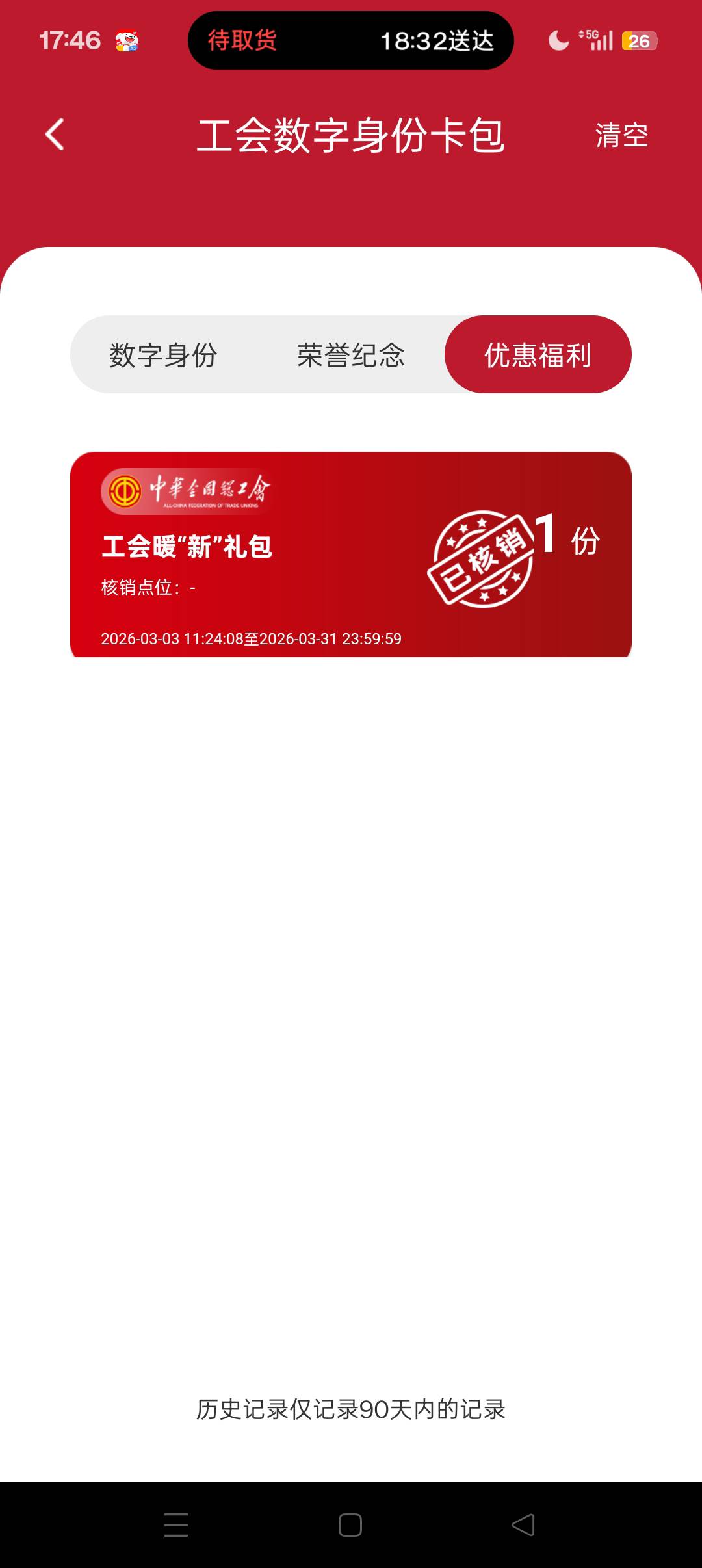 你去数字身份,右上角三横选管理,选历史记录,选优惠福利,看一看是不是已经注销了