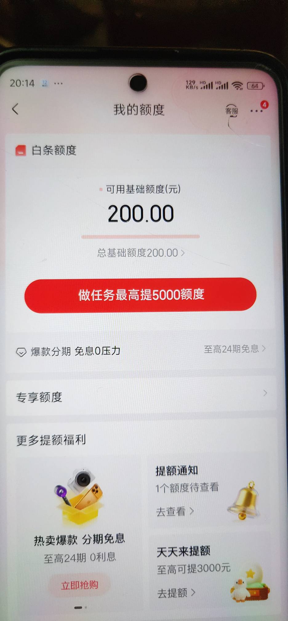 有白条额度200,就是用不了,光看