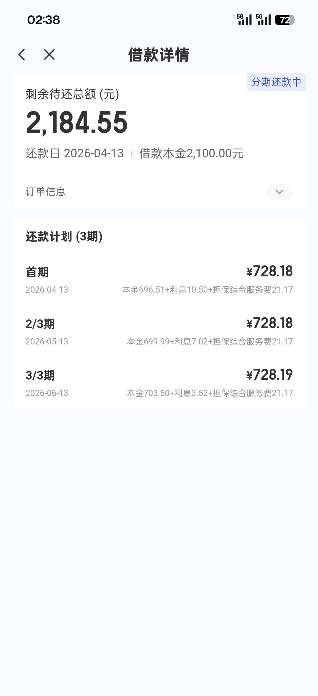 申请一千拒了,一会来短信生成新订单,打开申请十来分钟就到账了,扣了先用176一脸懵
