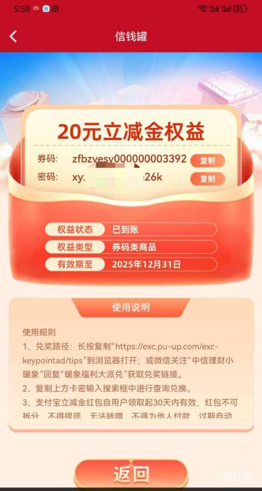 信银理财抽立减金