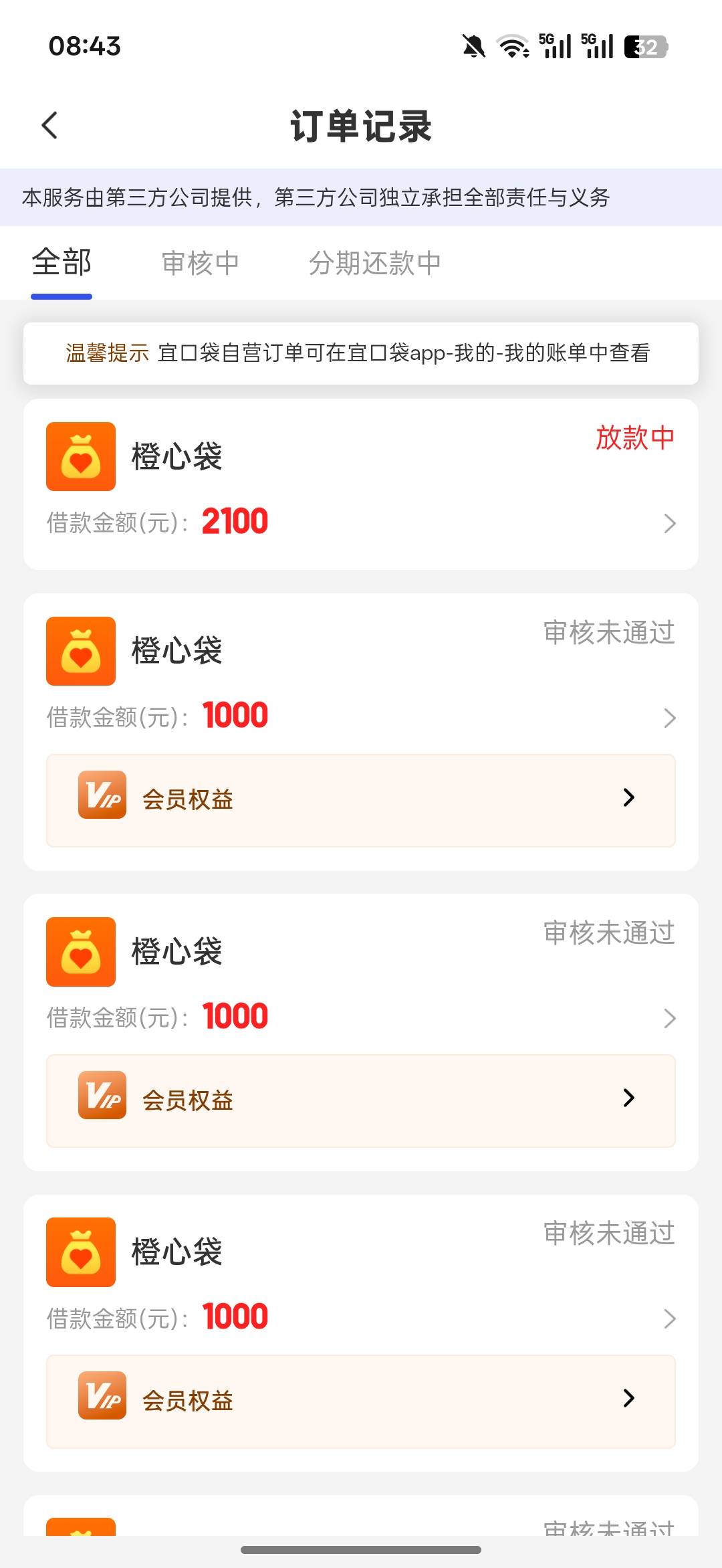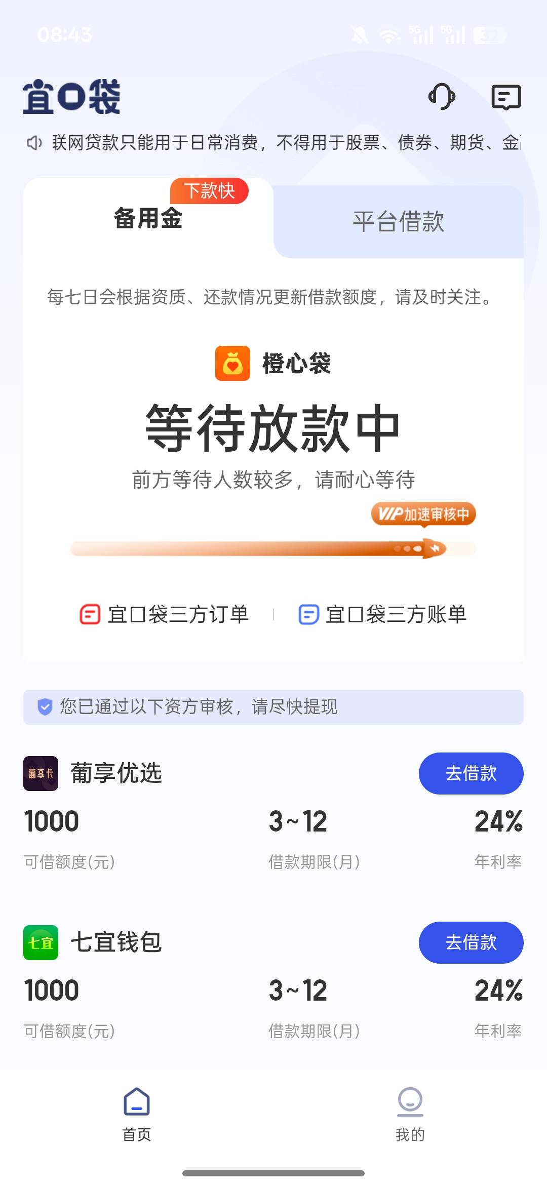 執著 发表于 2026-03-14 09:28 葡享和七宜基本没戏!cxd那个可以等!只要是放款中就能到!我之前等了三天还款日早上才放的款!秒扣会员和还款!