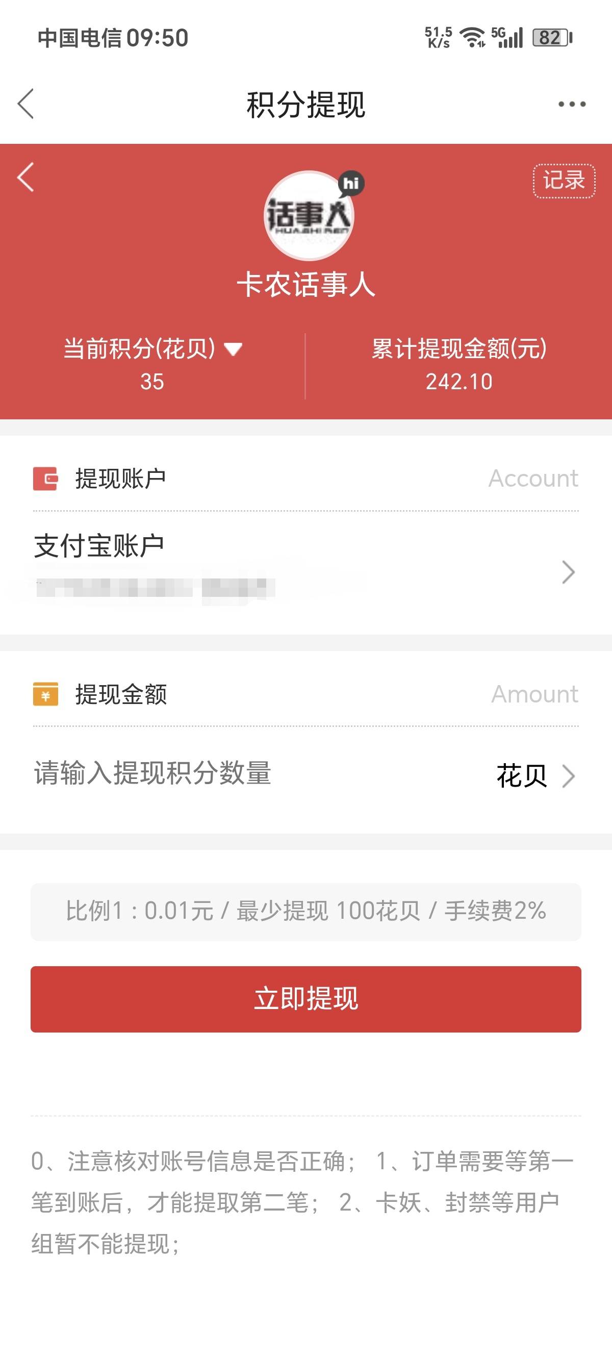 卡农签到一年花贝到账,70大毛,卡农还是很给力,一句话,坚持不一定有不坚持一定没有
