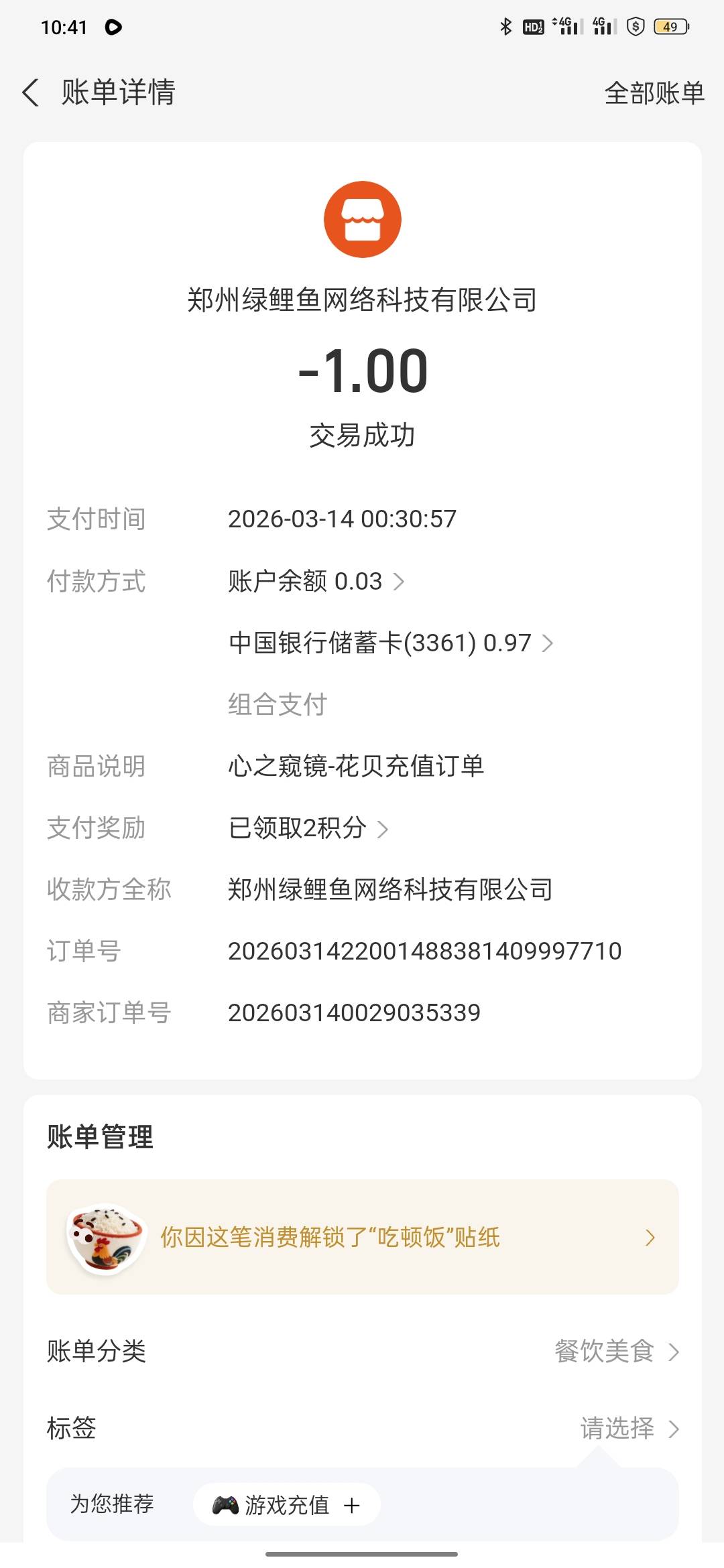 卡农花贝,充值不到账?