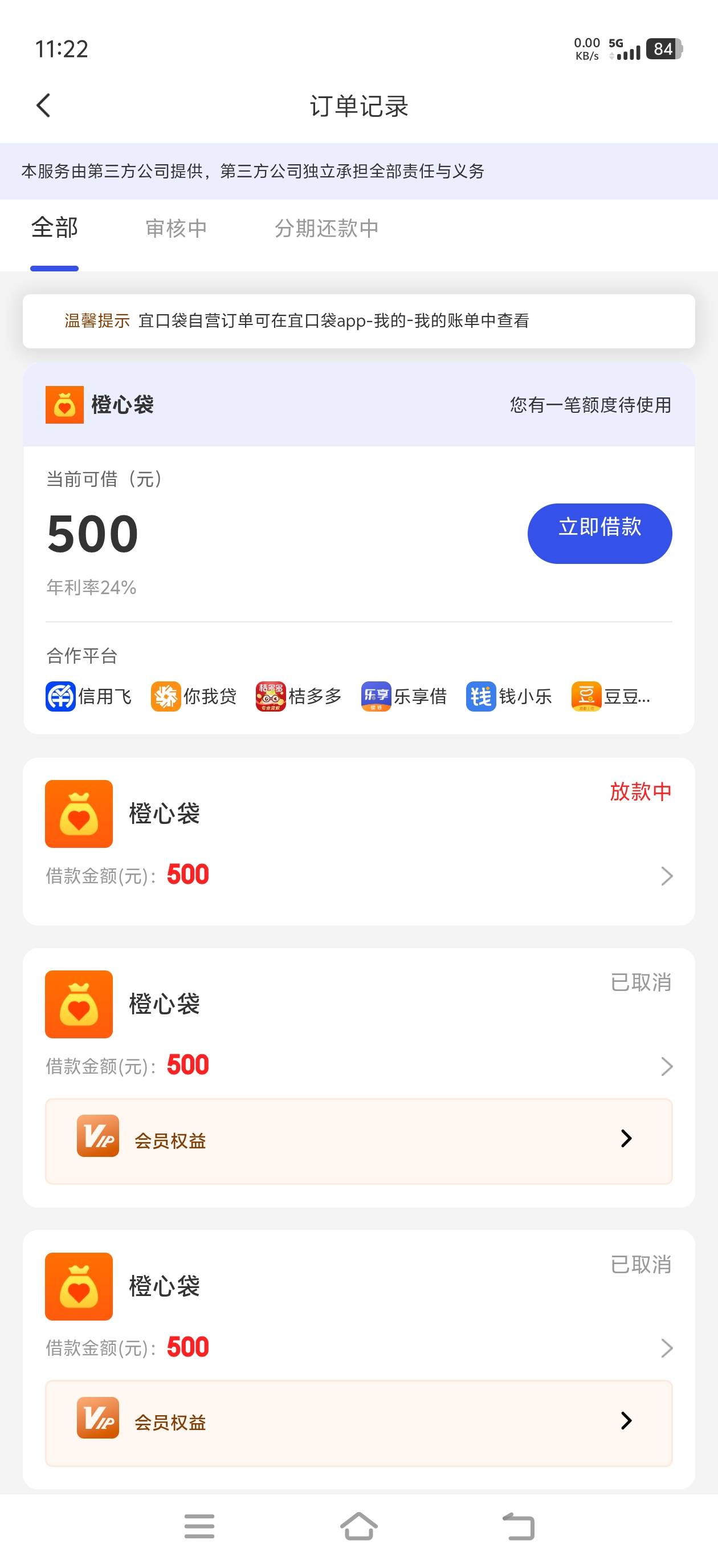 橙心贷,今天还款日期几天又给我来了一笔一直放款中,零晨四点的时候一看放款失败,又