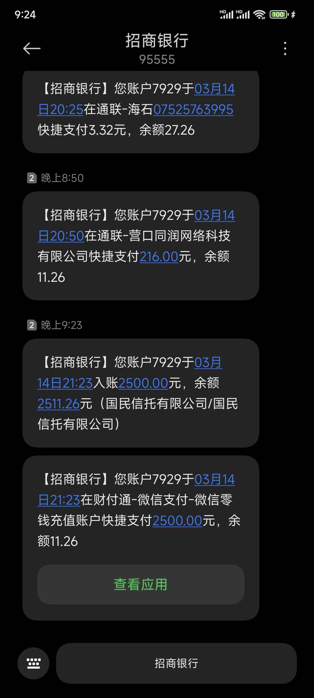 嗯嗯。上个月还了一笔,这个月把剩下的300多全结清了