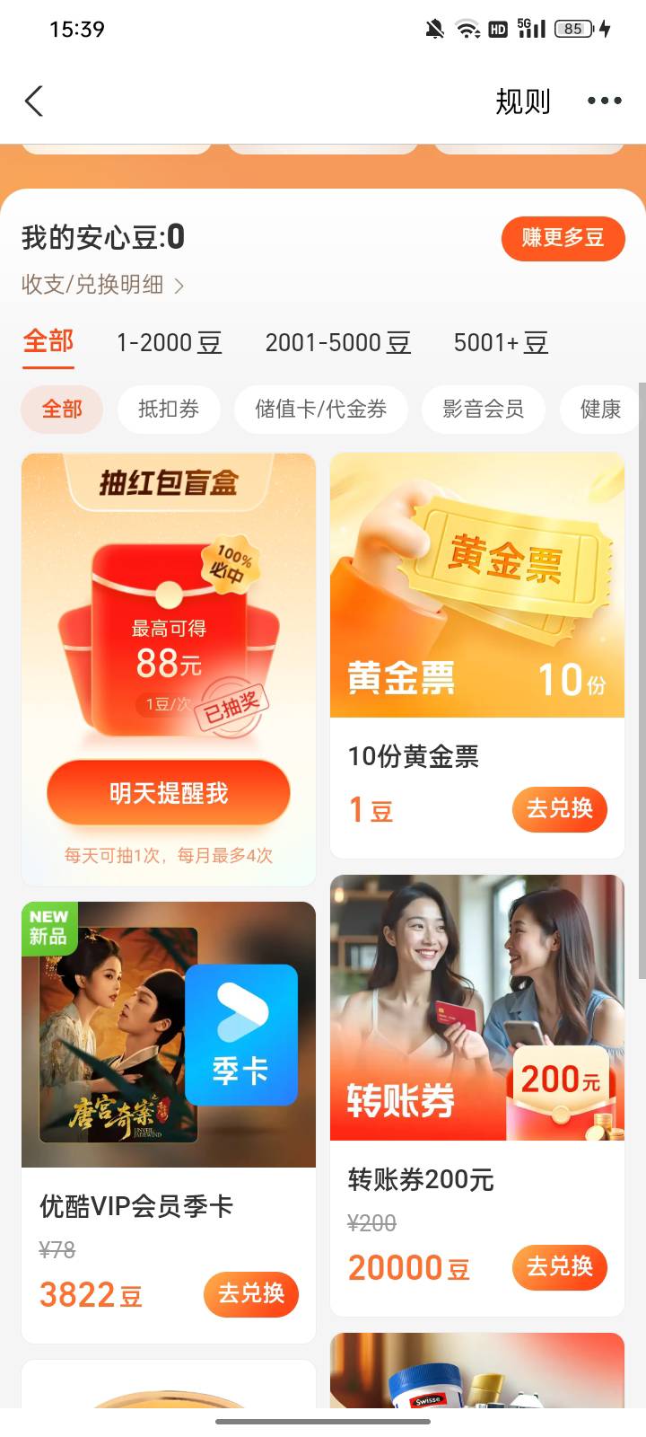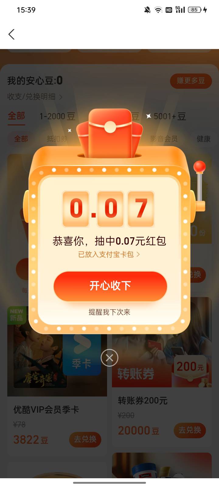 支付宝安心豆抽红包盲盒活动